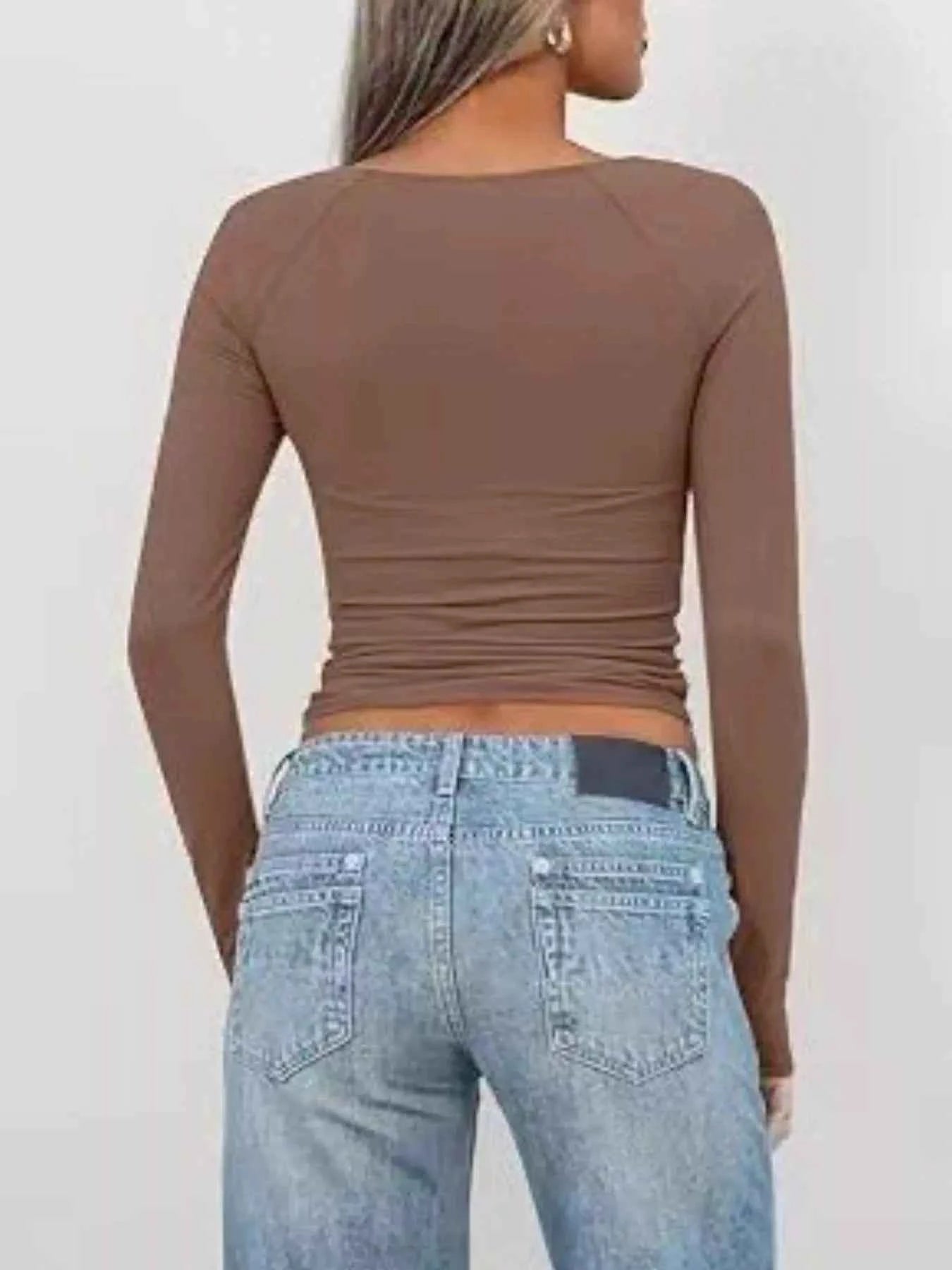 Twist Front Long Sleeve Fitted T-Shirt -