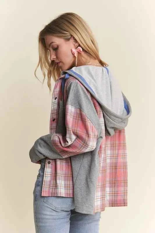ADORA Button Down Plaid Hoodie Shacket -