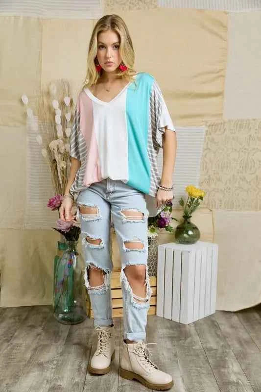 ADORA Colorblock Casual Knit Tunic Top -