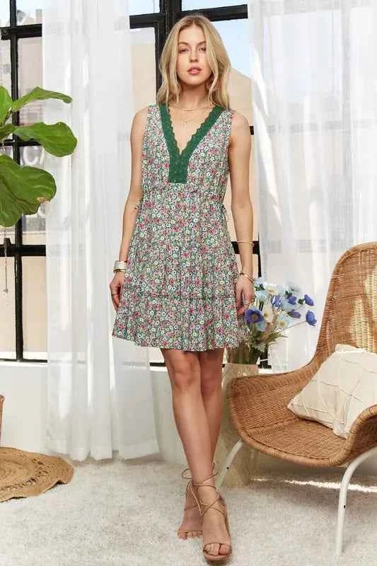 ADORA Lace Detail V-Neck Sleeveless Mini Dress ADORA Lace Detail V-Neck Sleeveless Mini Dress