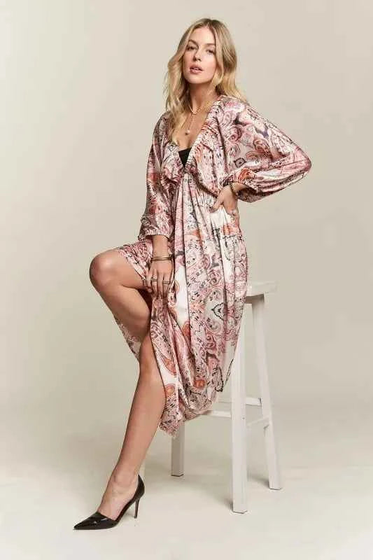 ADORA Printed V-Neck Batwing Sleeve Dress ADORA Printed V-Neck Batwing Sleeve Dress