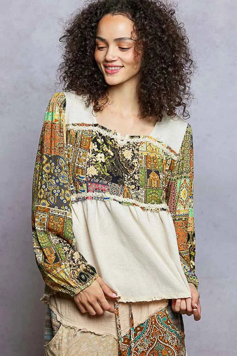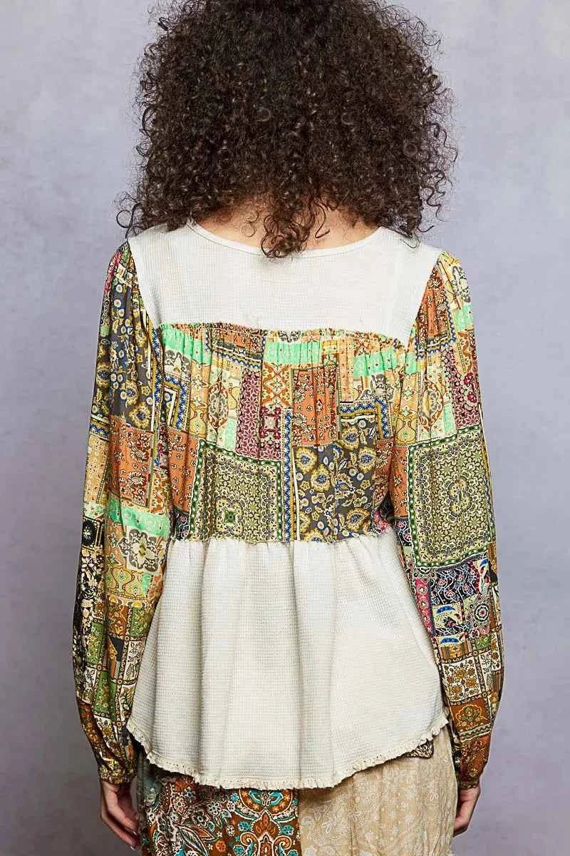 Umgee Multicolor Abstract Floral Print Blouse with Ruffle Neck Umgee Multicolor Abstract Floral Print Blouse with Ruffle Neck