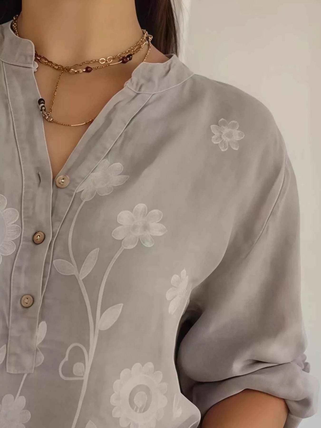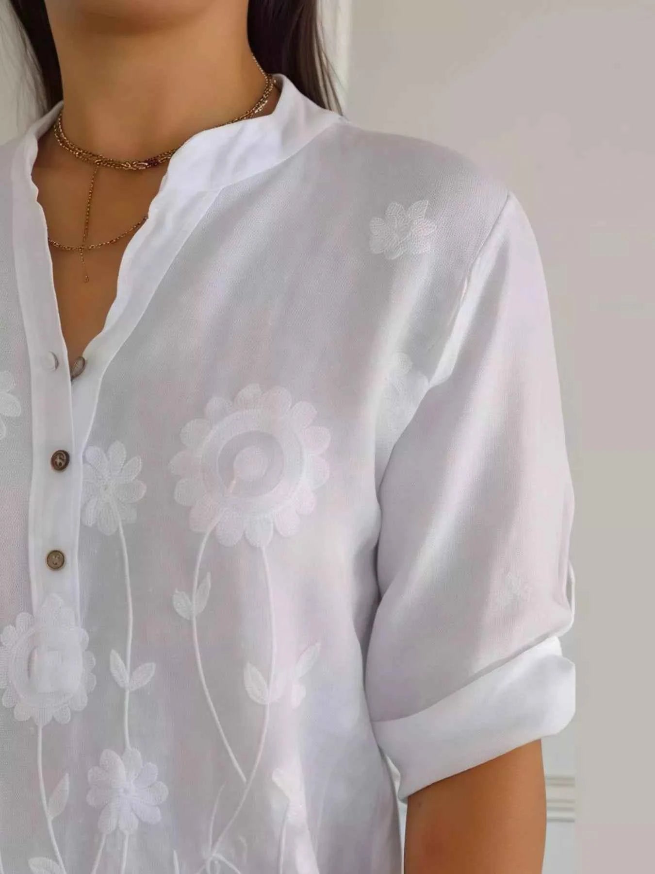 Full Size Floral Embroidered Button Detail Blouse Plus Size Full Size Floral Embroidered Button Detail Blouse Plus Size