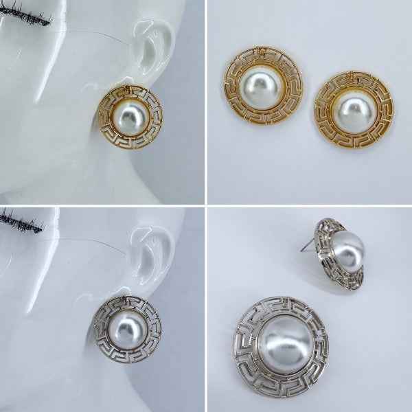 Round Greek Symbol half Pearl Post Back Earrings Round Greek Symbol half Pearl Post Back Earrings