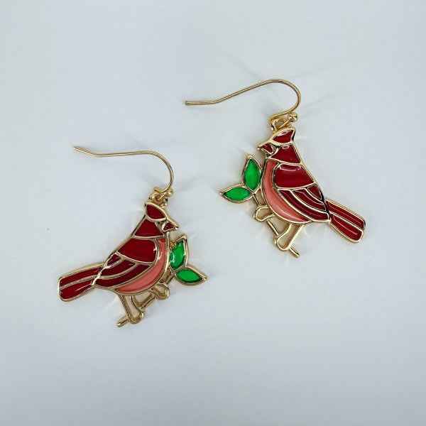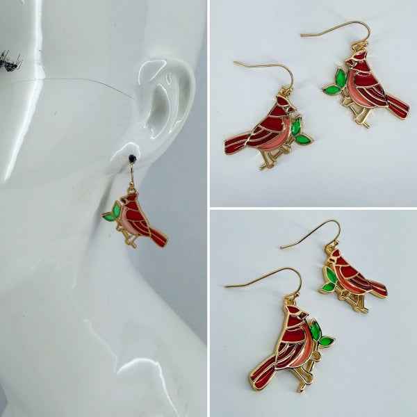 Gold finish Clear Epoxy Red Cardinal Bird Earrings Gold finish Clear Epoxy Red Cardinal Bird Earrings