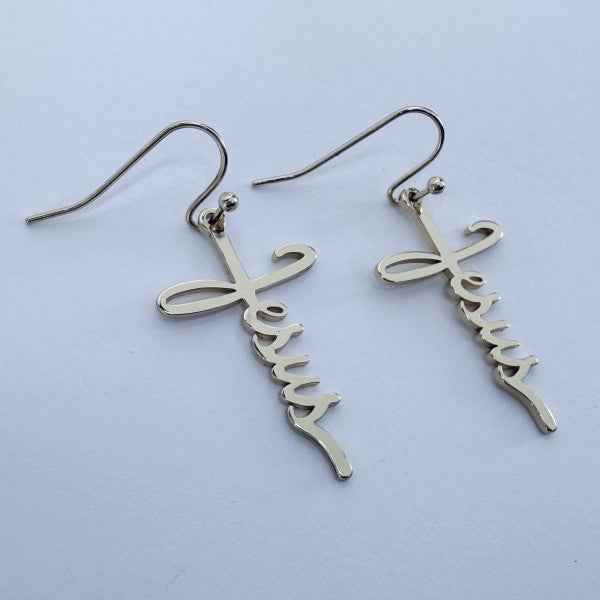 Fish Hook Earrings Jesus Word Cross Design Dangle Fish Hook Earrings Jesus Word Cross Design Dangle