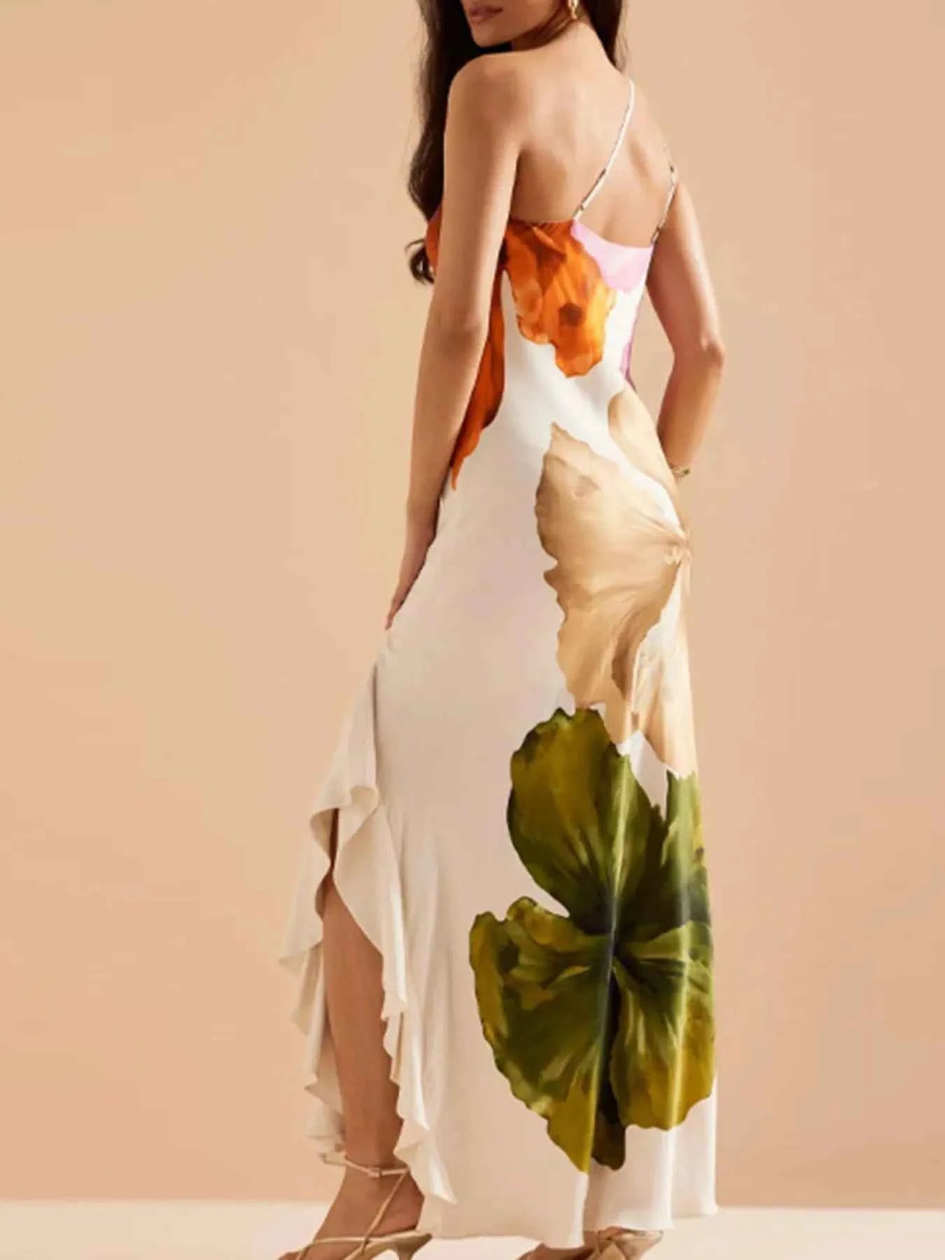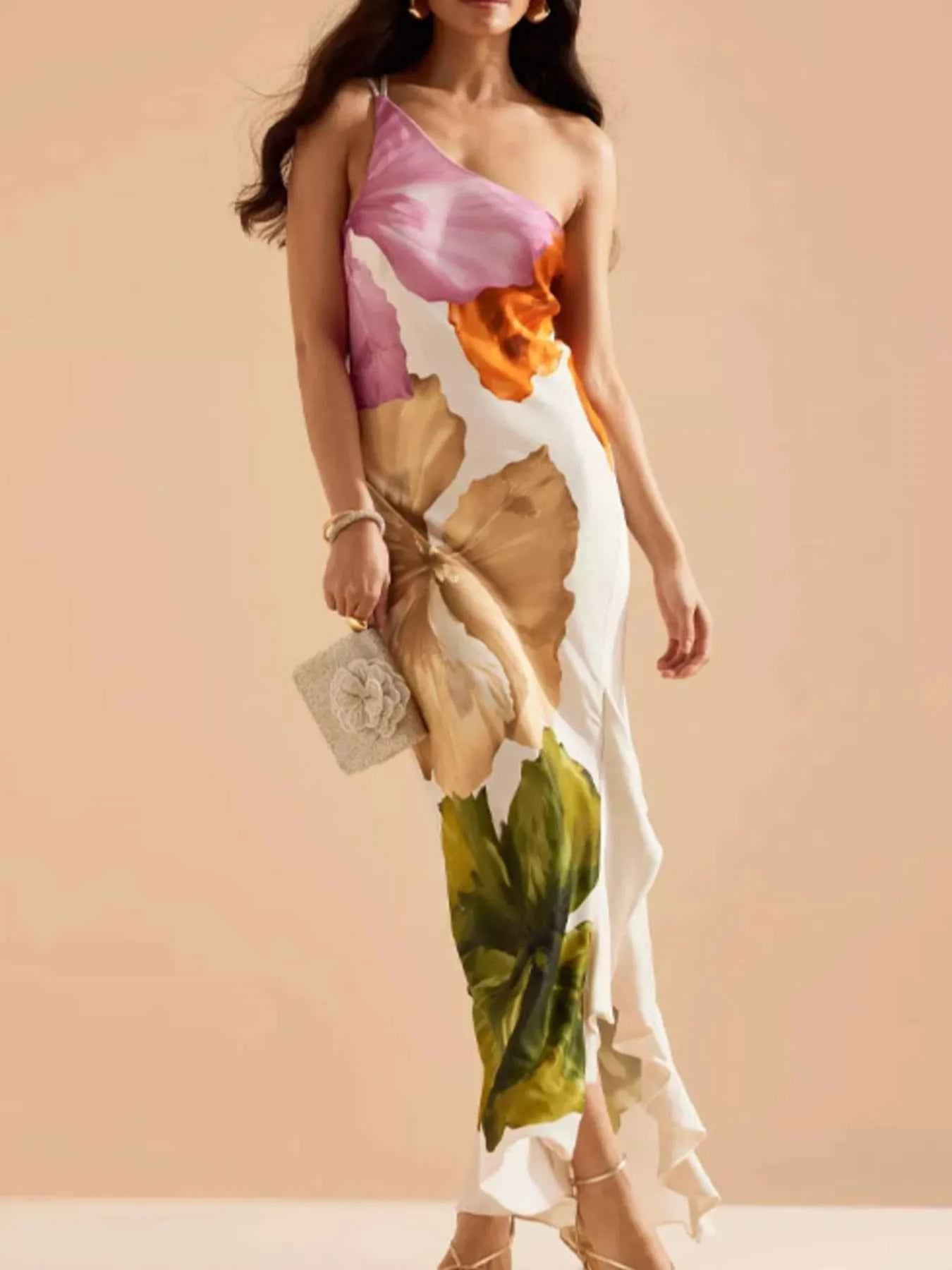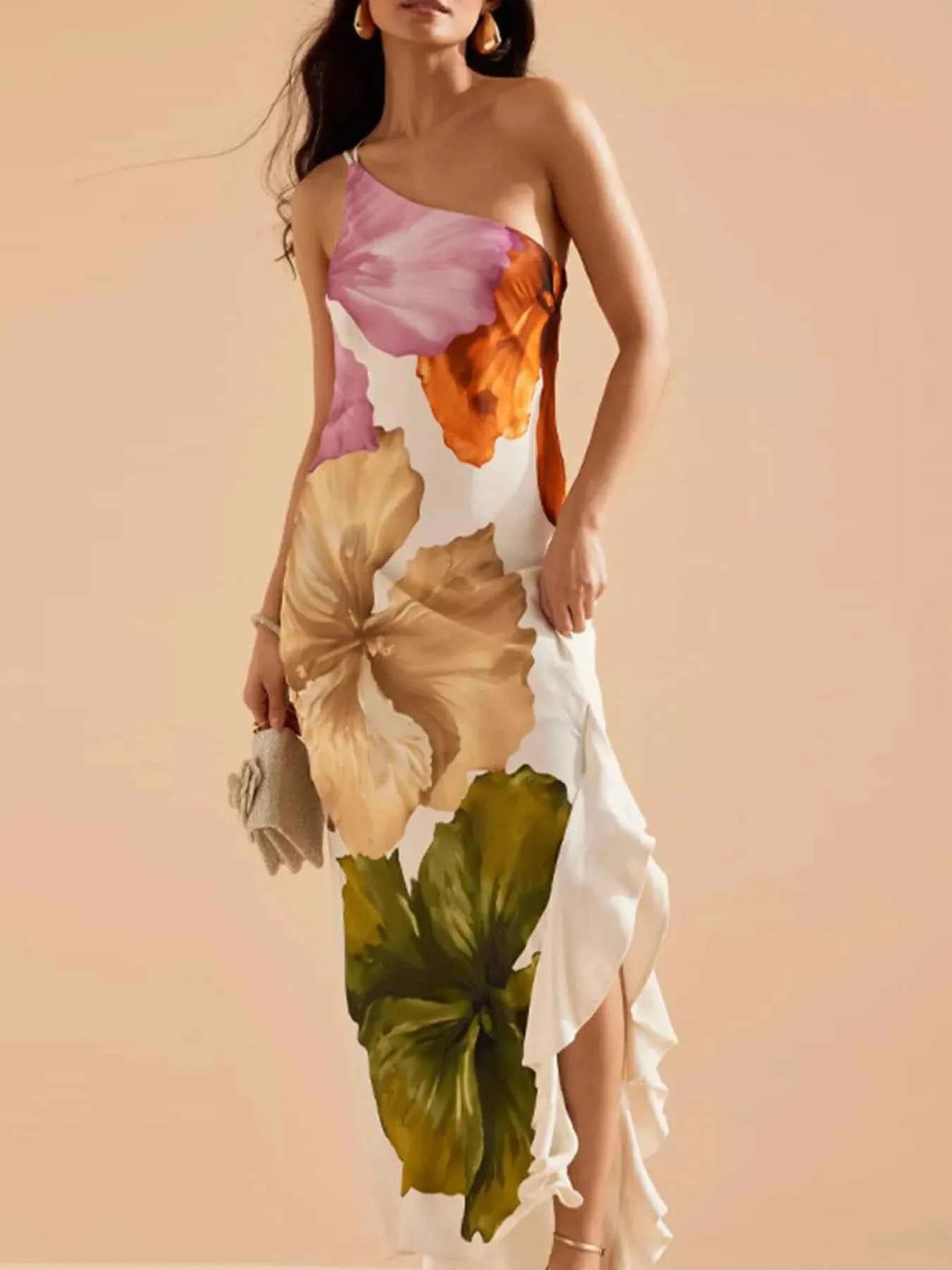 Floral Print Single Shoulder Maxi Dress Floral Print Single Shoulder Maxi Dress