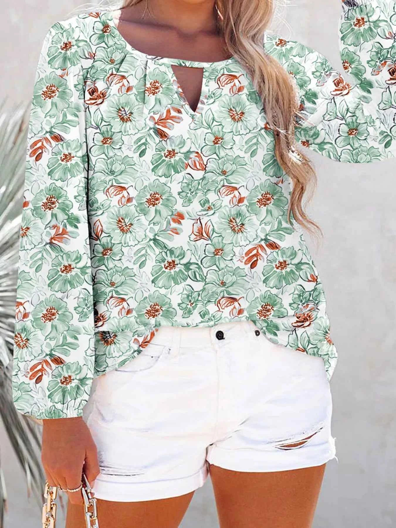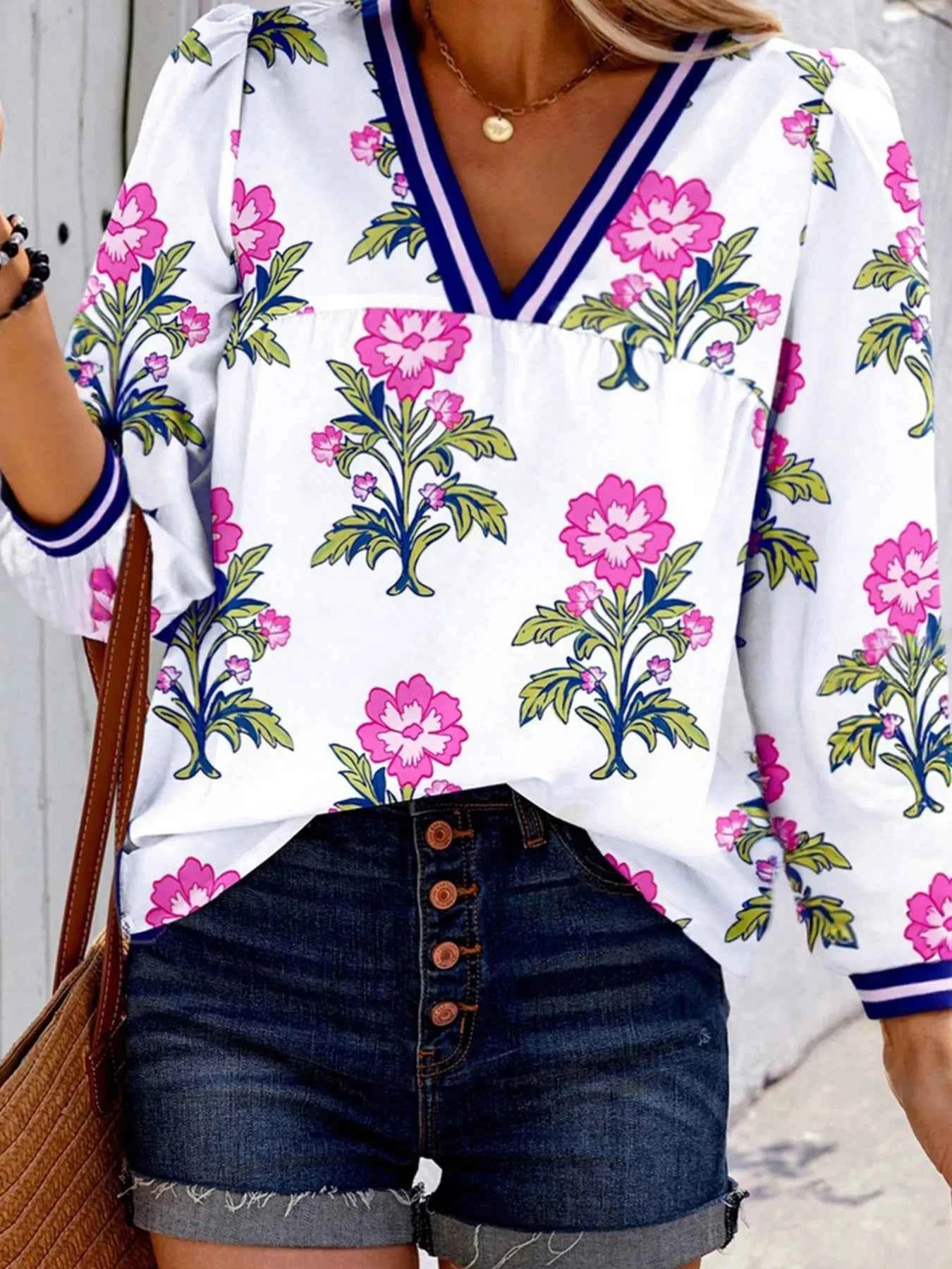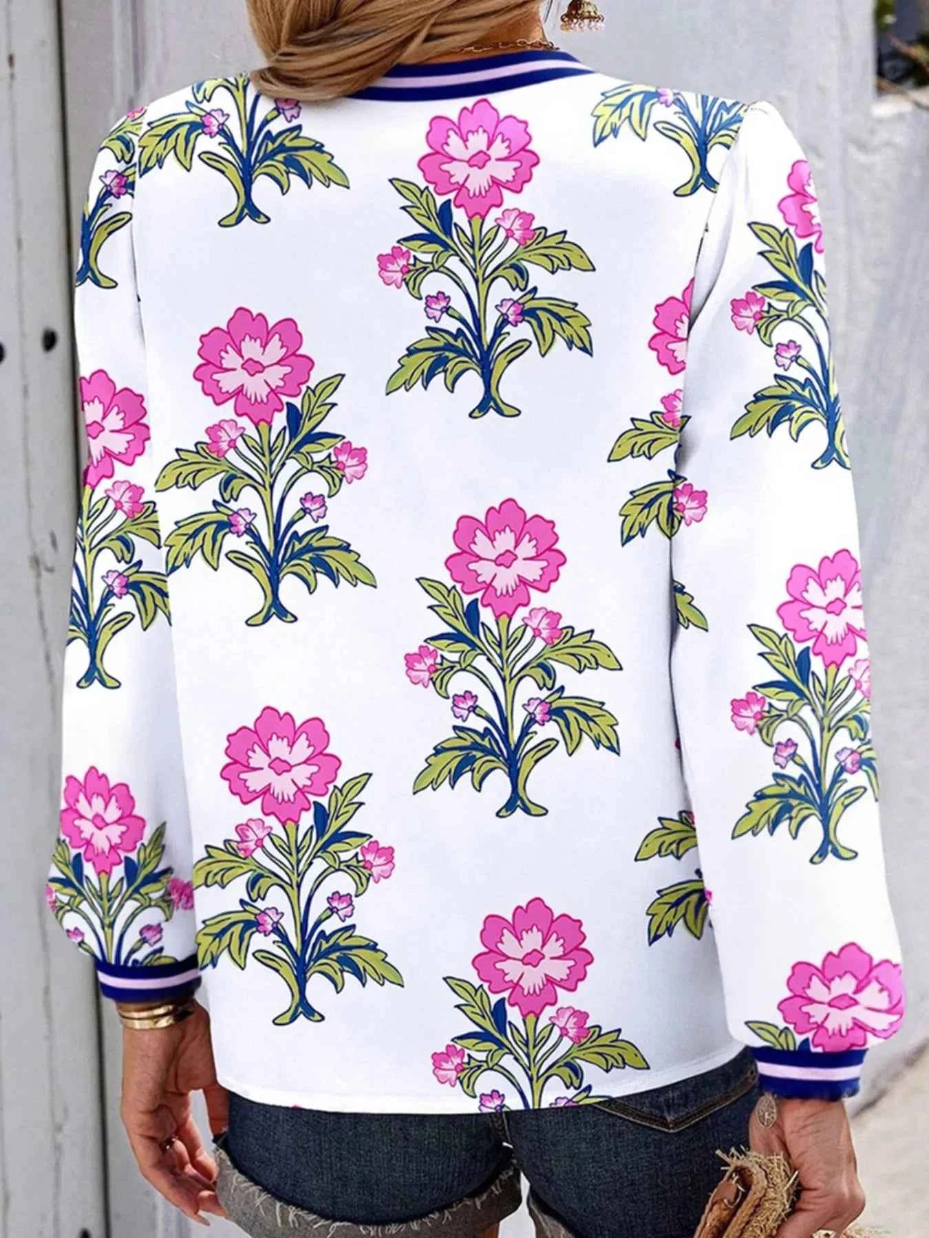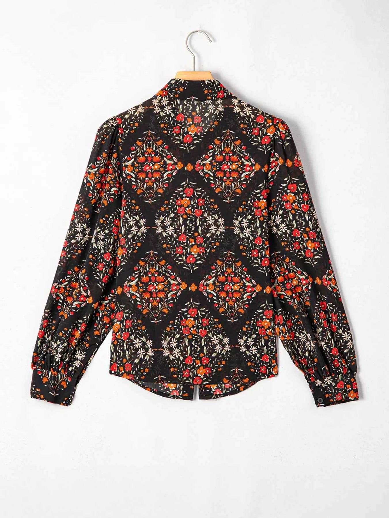 Floral Print Lantern Sleeve Loose Shirt Floral Print Lantern Sleeve Loose Shirt