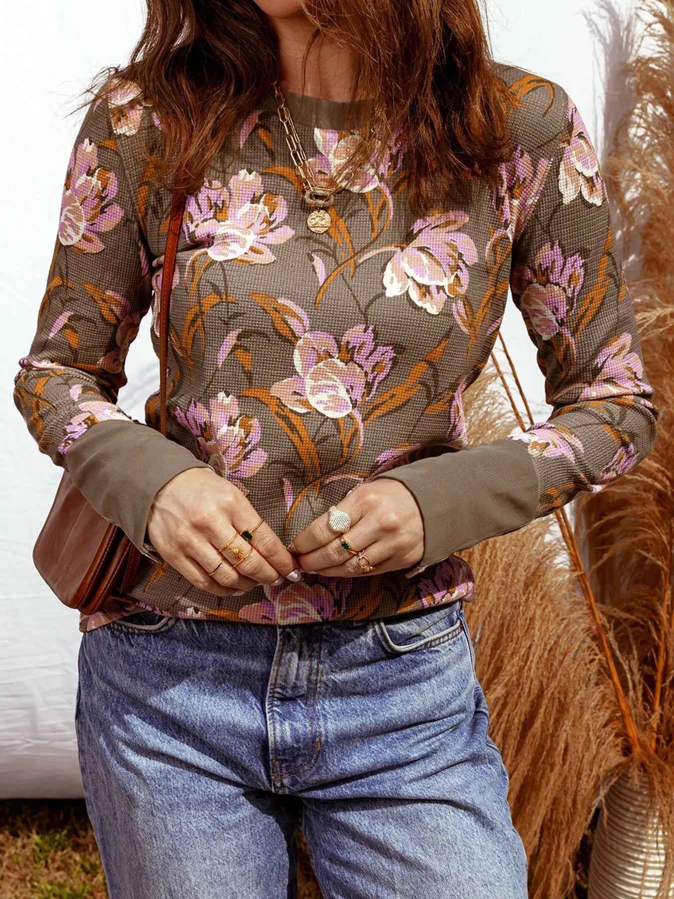 Floral Print Waffle Textured Long Sleeve Top Floral Print Waffle Textured Long Sleeve Top