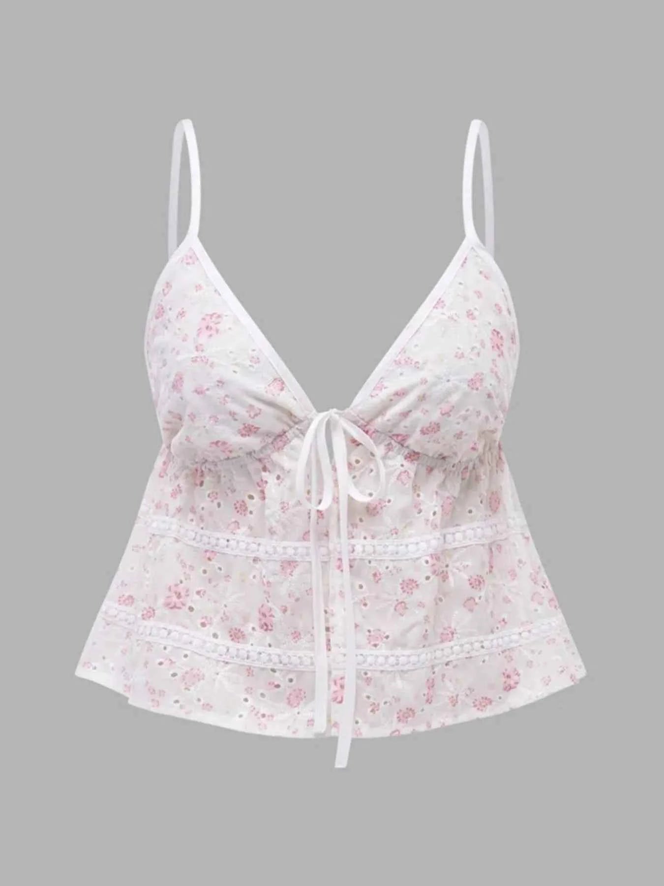 Floral Gingham Print Cami and Shorts Two-Piece Set Floral Gingham Print Cami and Shorts Two-Piece Set