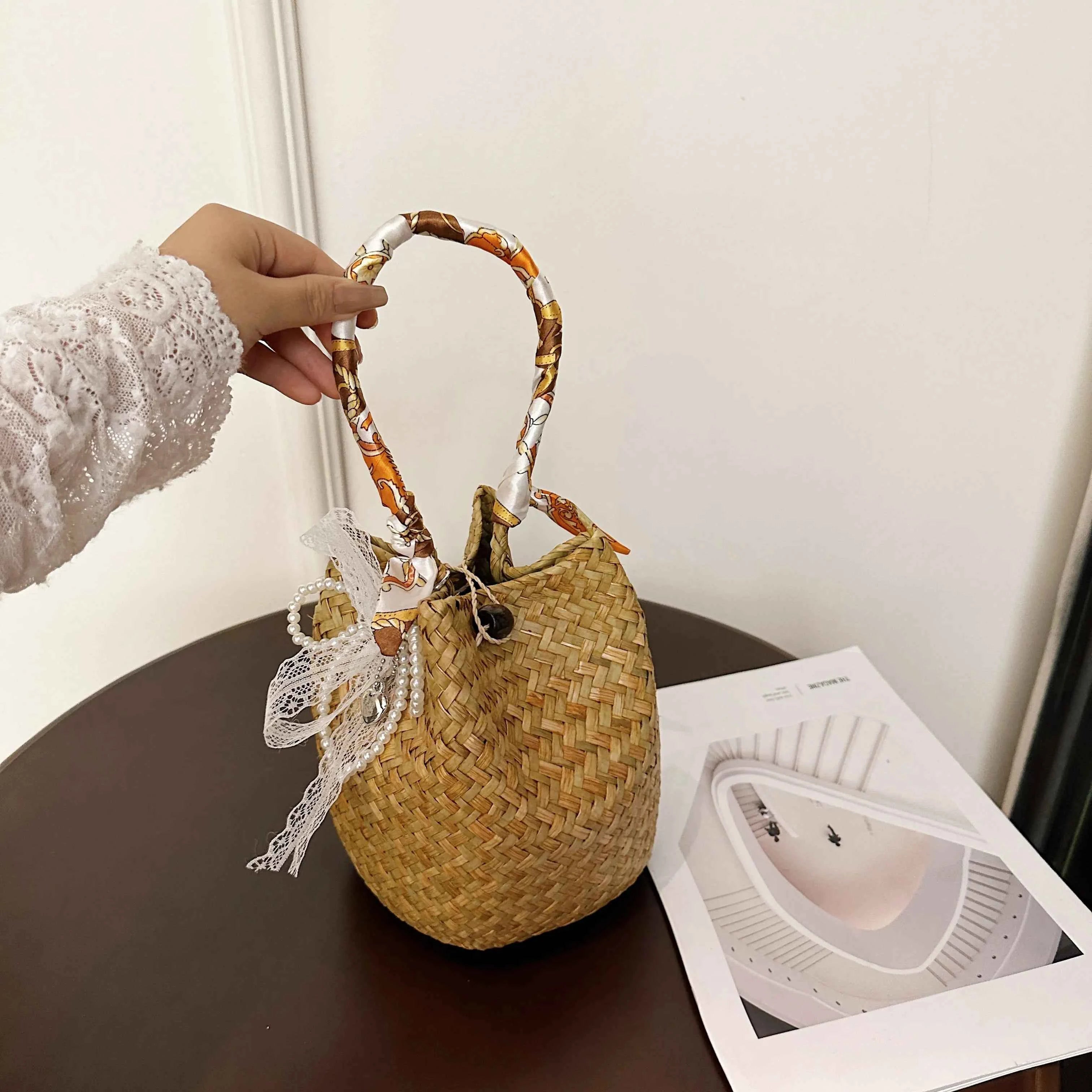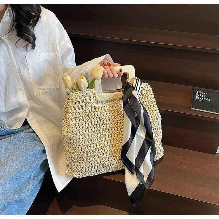 Justin Taylor Beach Date Straw Rattan Handbag in Ivory -
