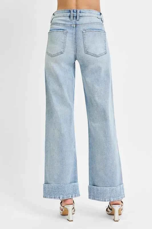 RISEN High Rise Ankle Wide Rhine Stone Cuffed Jeans RISEN High Rise Ankle Wide Rhine Stone Cuffed Jeans