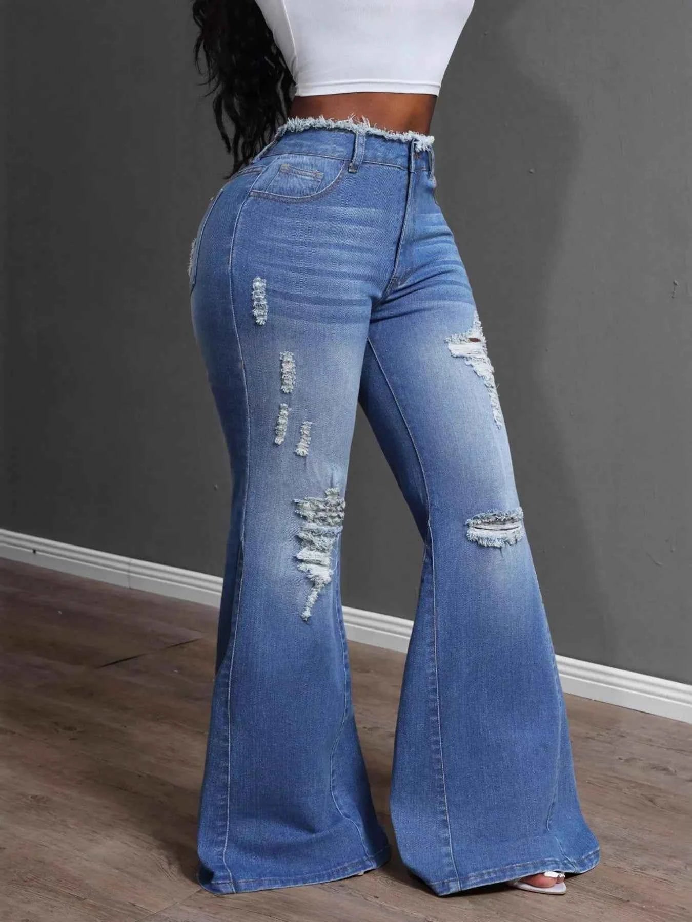 Distressed Raw Hem High-Waisted Flare Jeans Distressed Raw Hem High-Waisted Flare Jeans