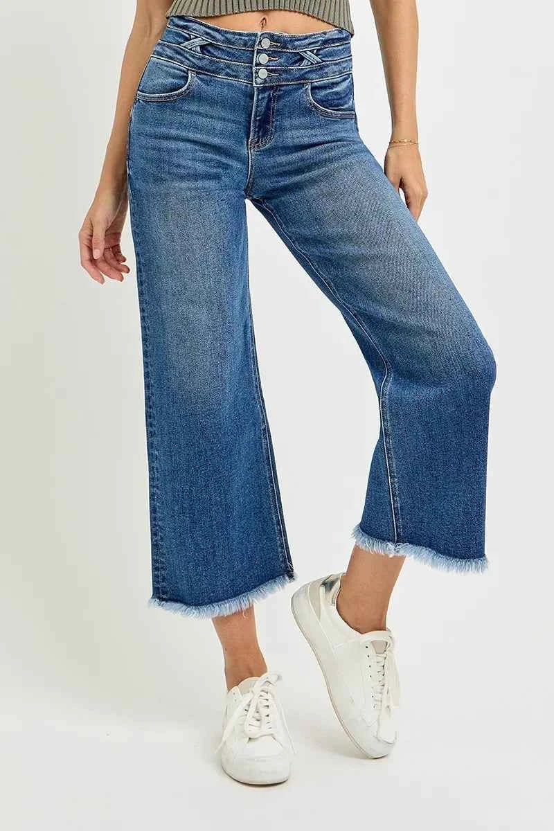 RISEN High Rise Crop Wide Leg Jeans with Wide Band Detail RISEN High Rise Crop Wide Leg Jeans with Wide Band Detail