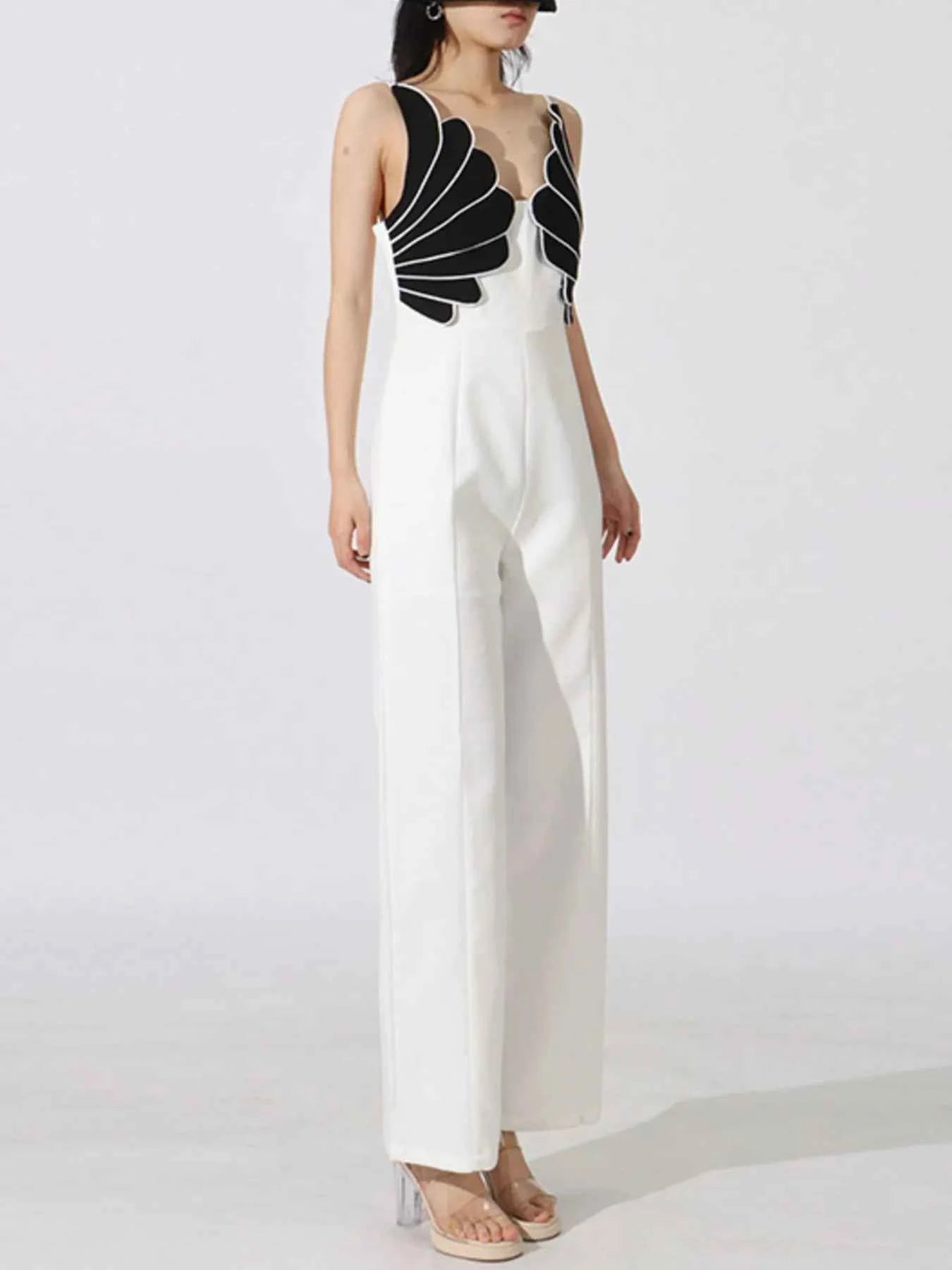Contrast Sleeveless Wide-Leg Jumpsuit -