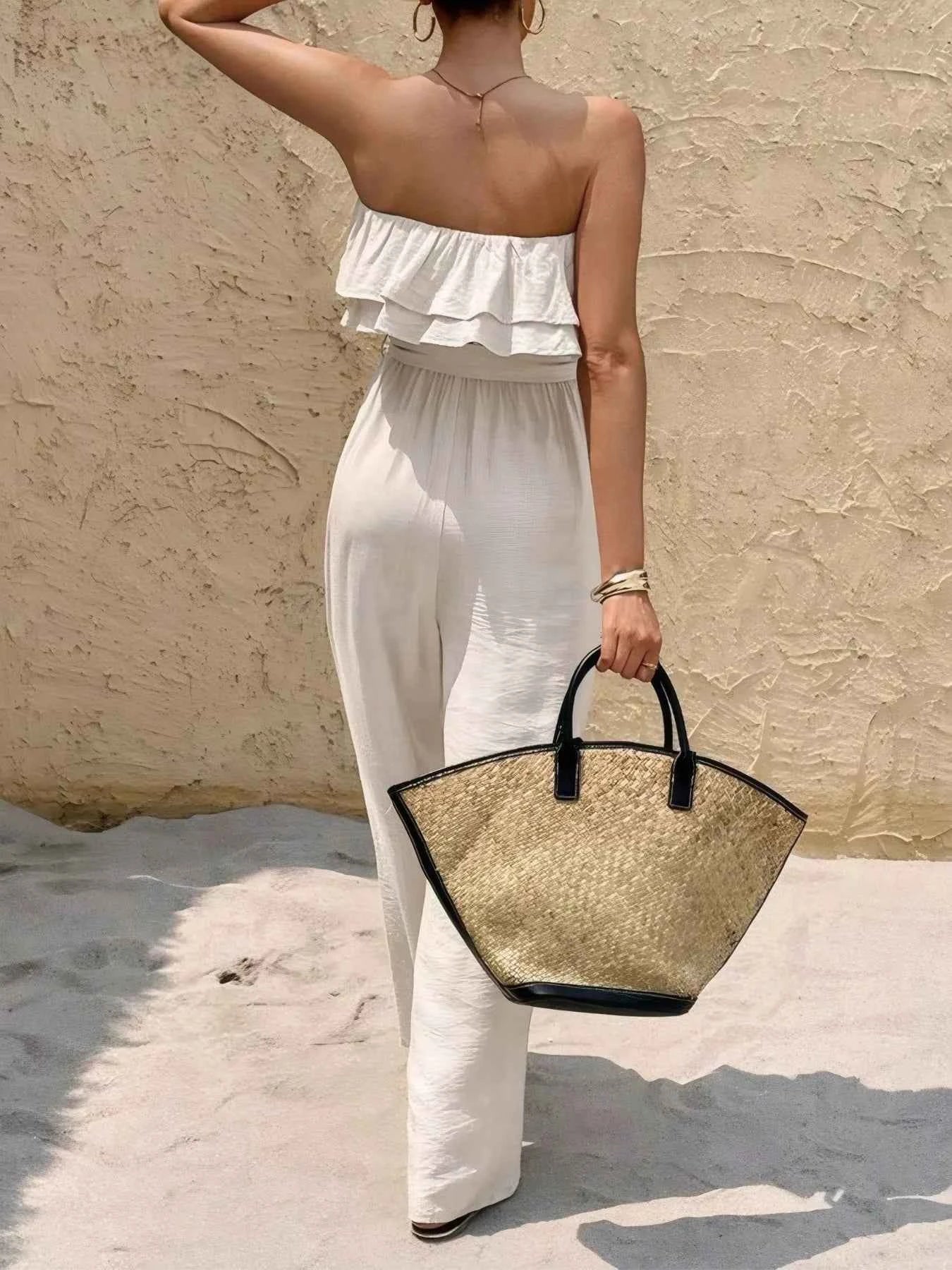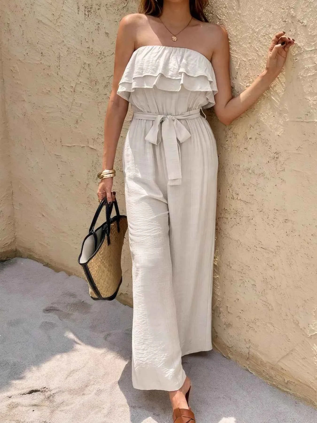 Off-Shoulder Ruffled Wide Leg Jumpsuit -
