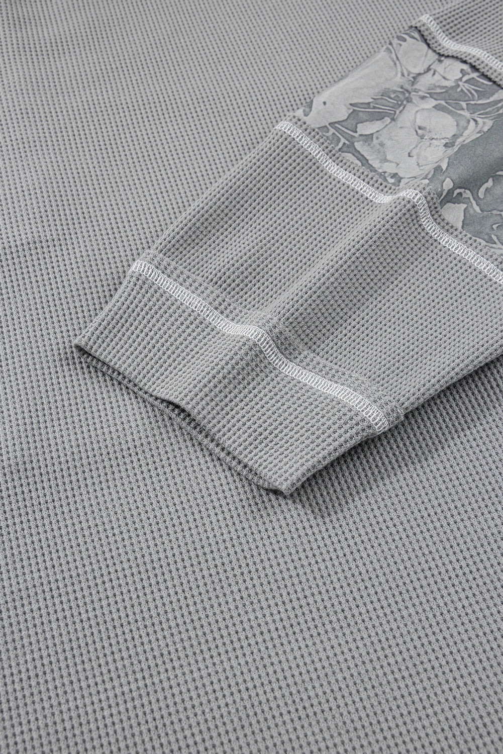 Gray Mixed Waffle Knit Patchwork Henley Plus Size Hoodie Gray Mixed Waffle Knit Patchwork Henley Plus Size Hoodie