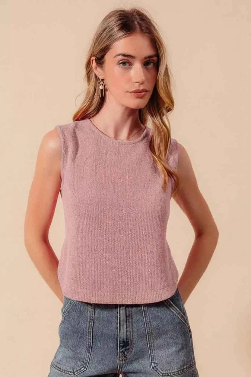 SO ME Sleeveless Hacci Knit Top with Round Hem SO ME Sleeveless Hacci Knit Top with Round Hem