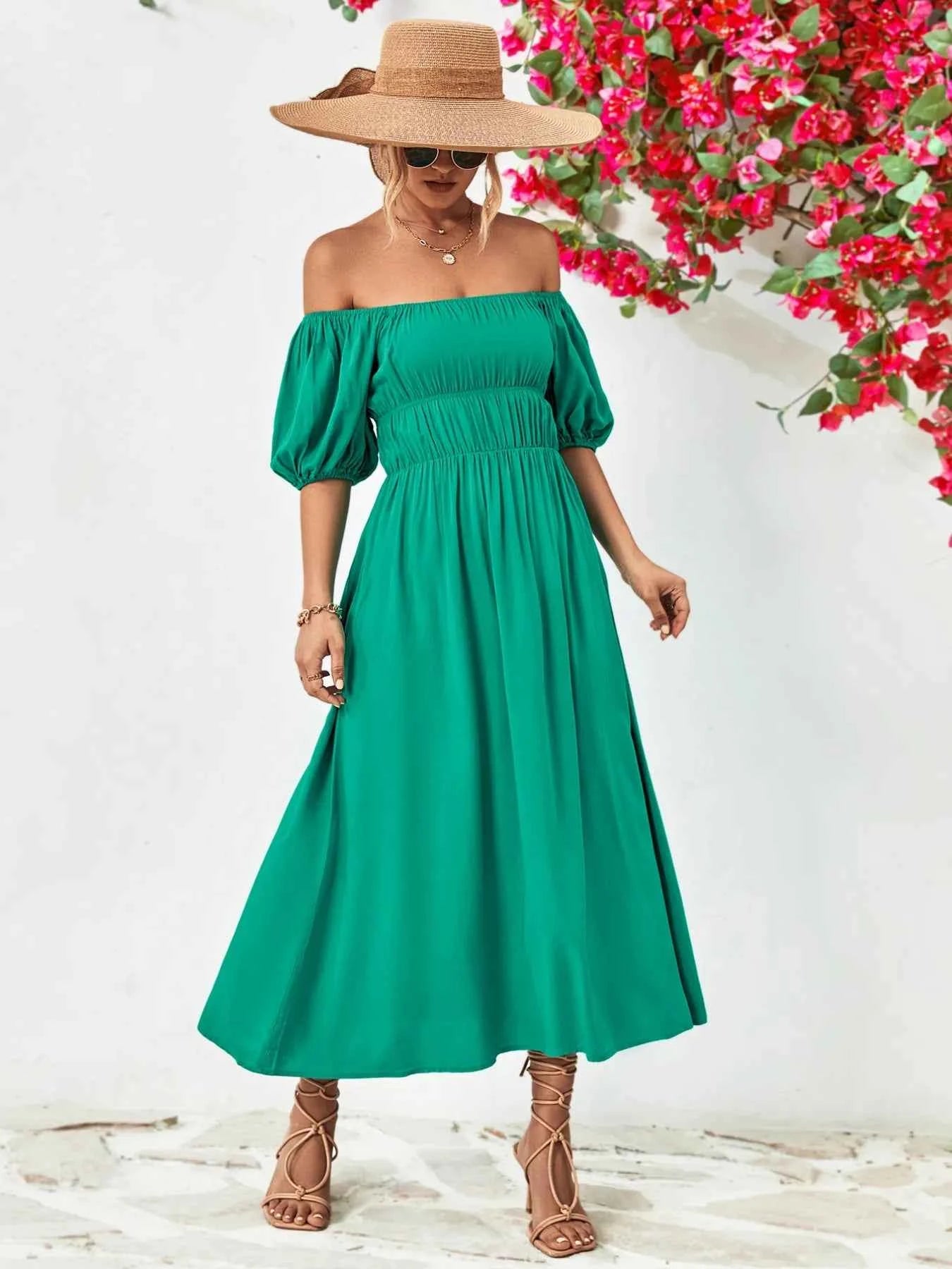 Off-Shoulder Puff Sleeve Smocked Maxi Dress Off-Shoulder Puff Sleeve Smocked Maxi Dress