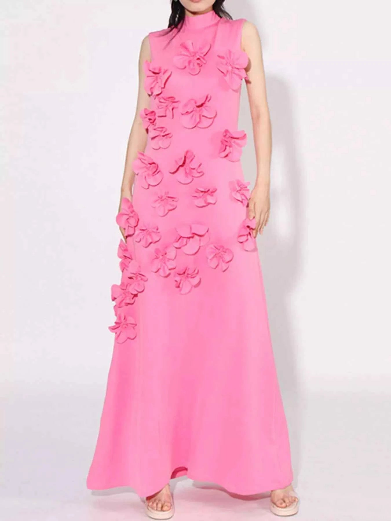 Floral Applique Mock Neck Sleeveless Maxi Dress Floral Applique Mock Neck Sleeveless Maxi Dress