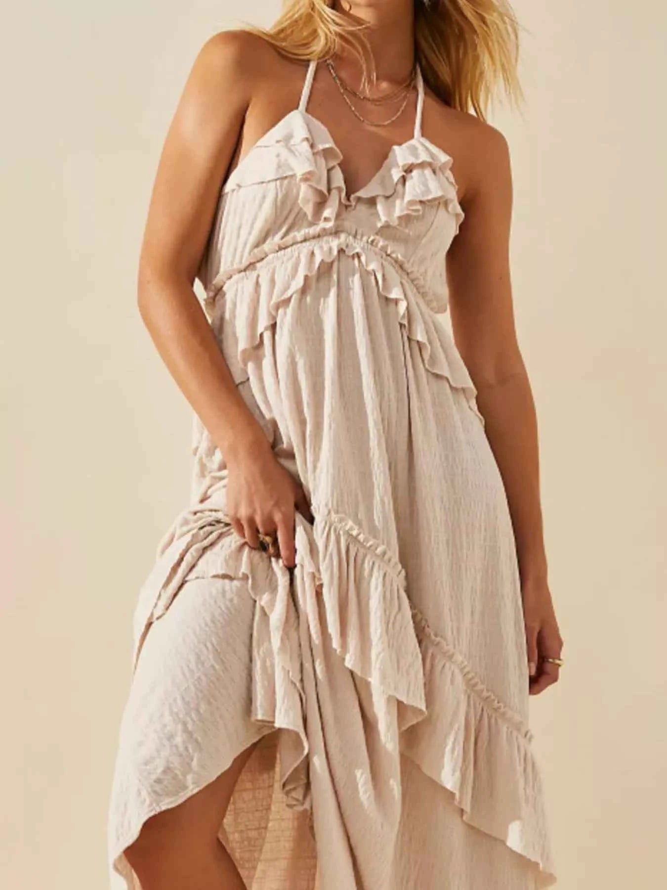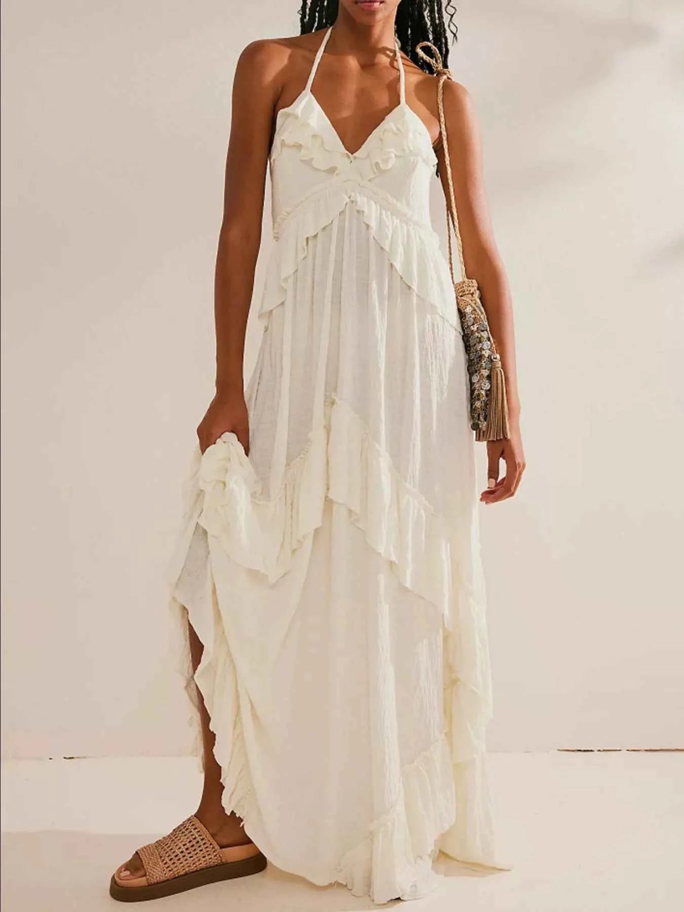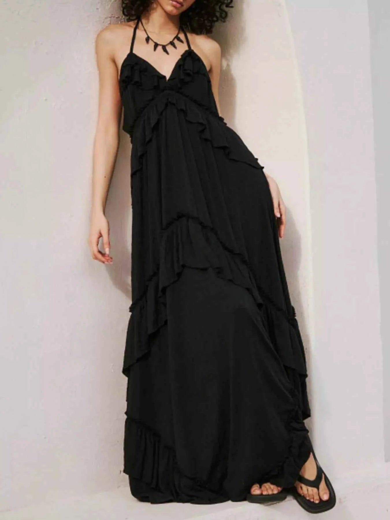 Ruffled Short Sleeve Tiered Maxi Dress -