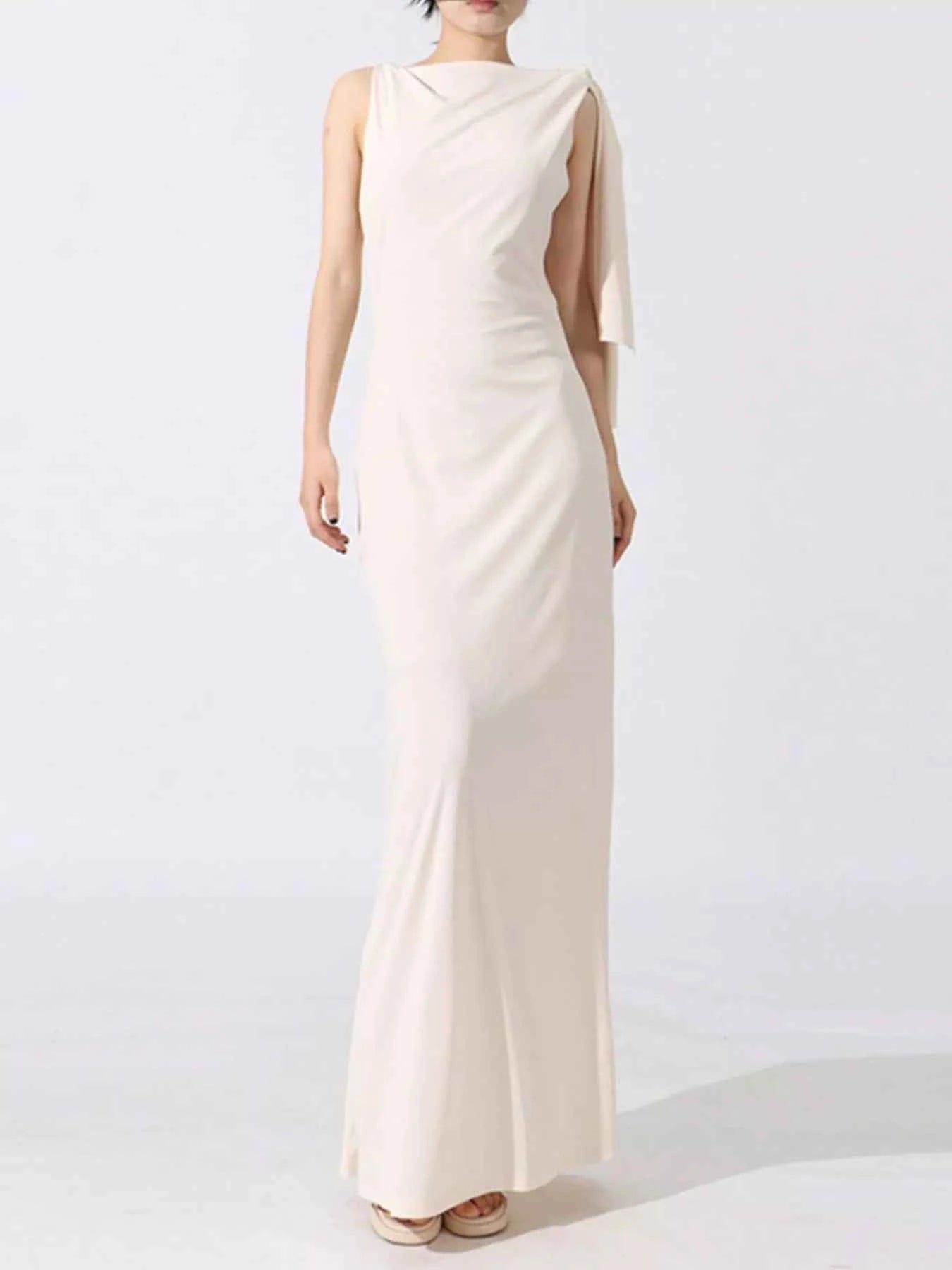 Round Neck Maxi Dress with Flowing Cape Sleeves Round Neck Maxi Dress with Flowing Cape Sleeves