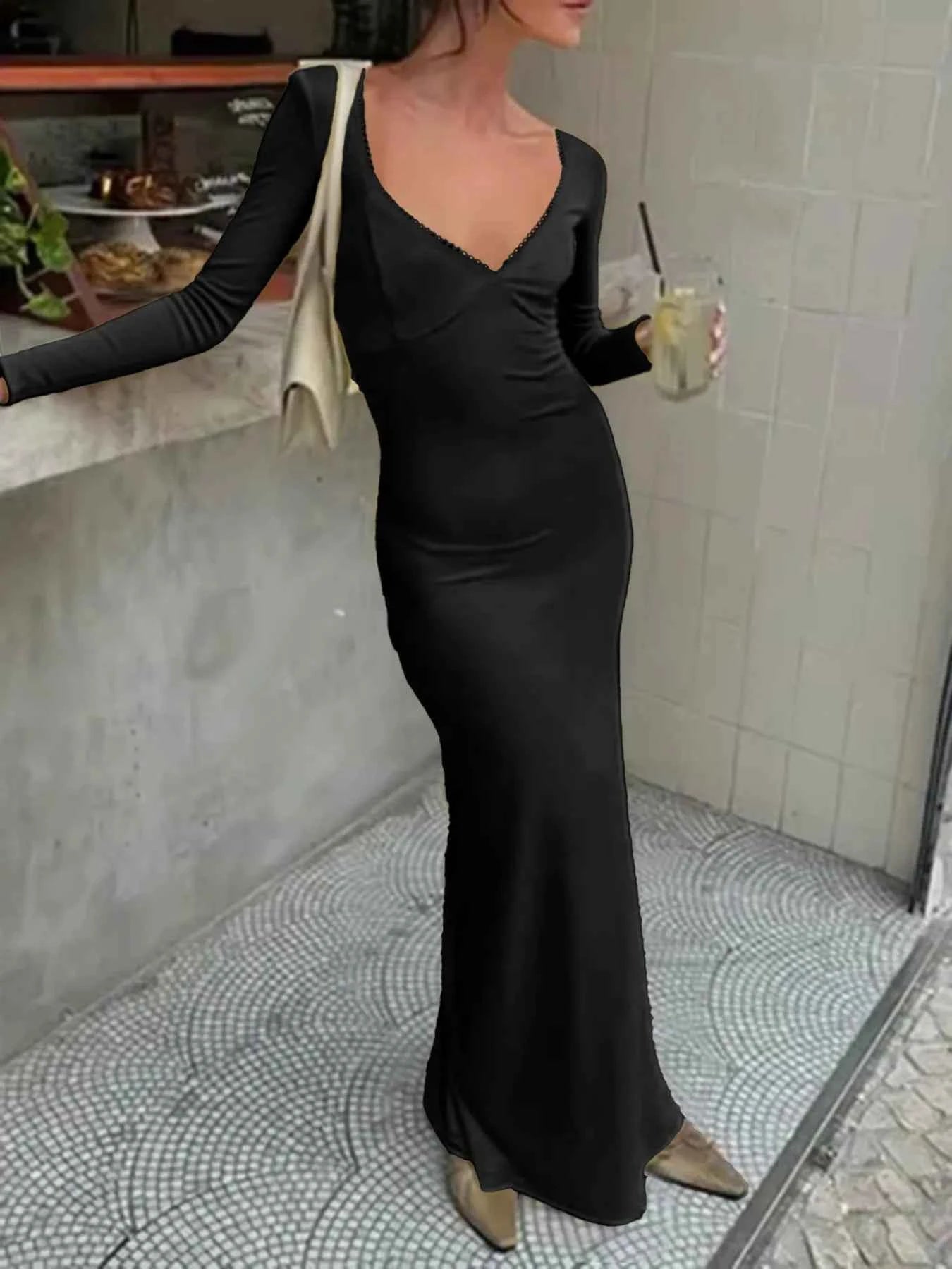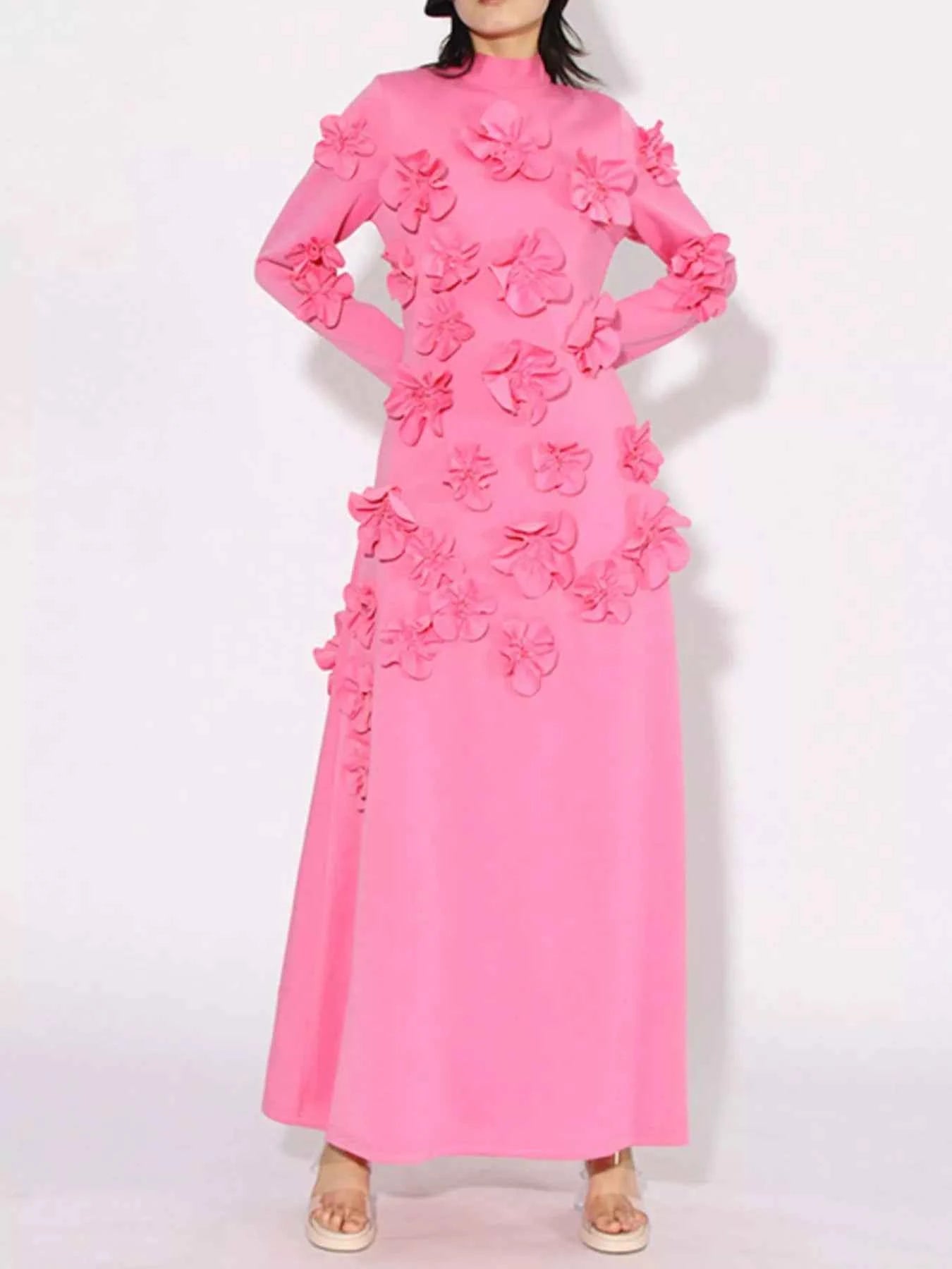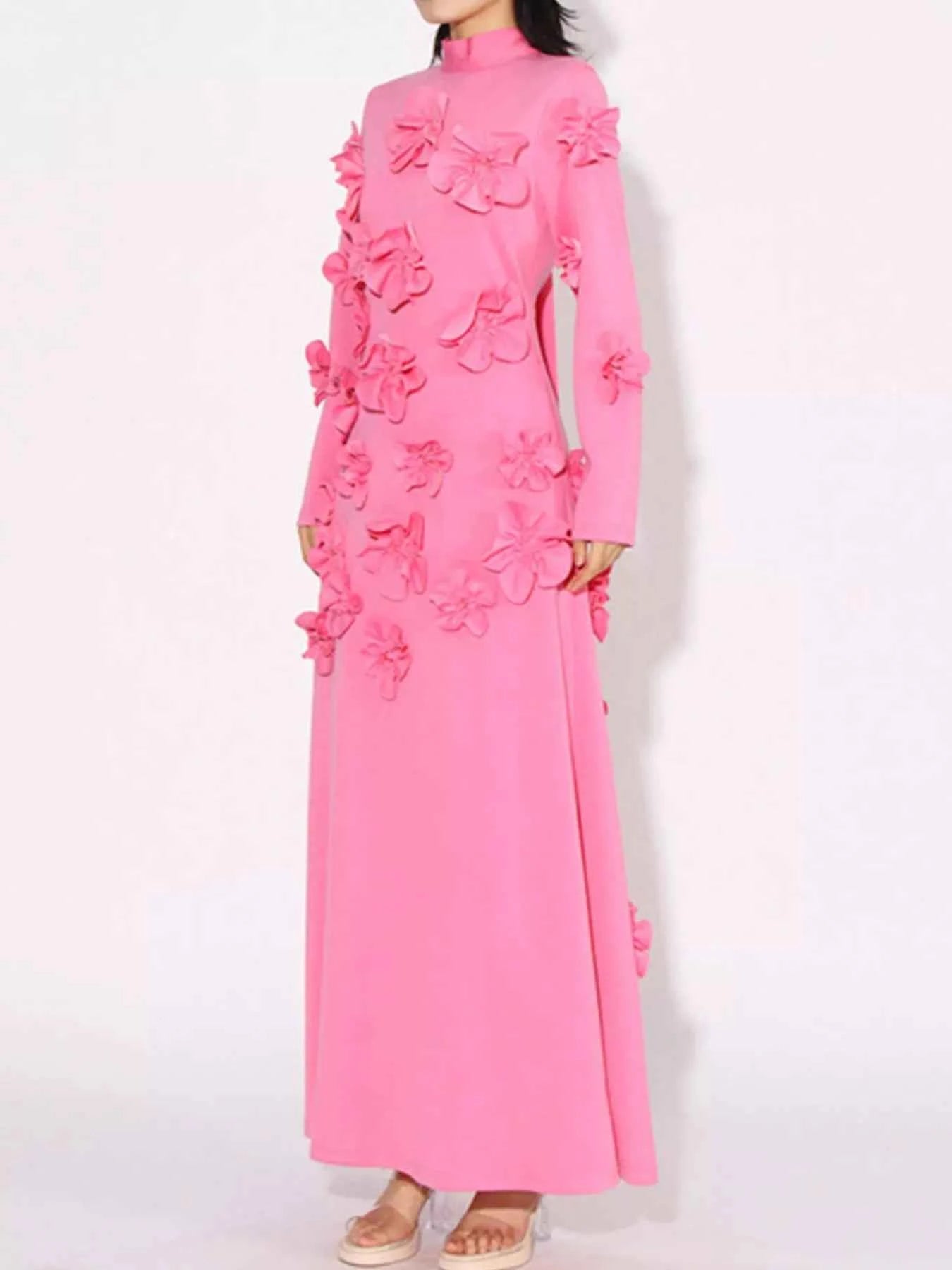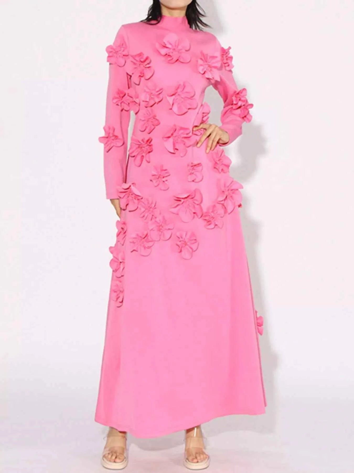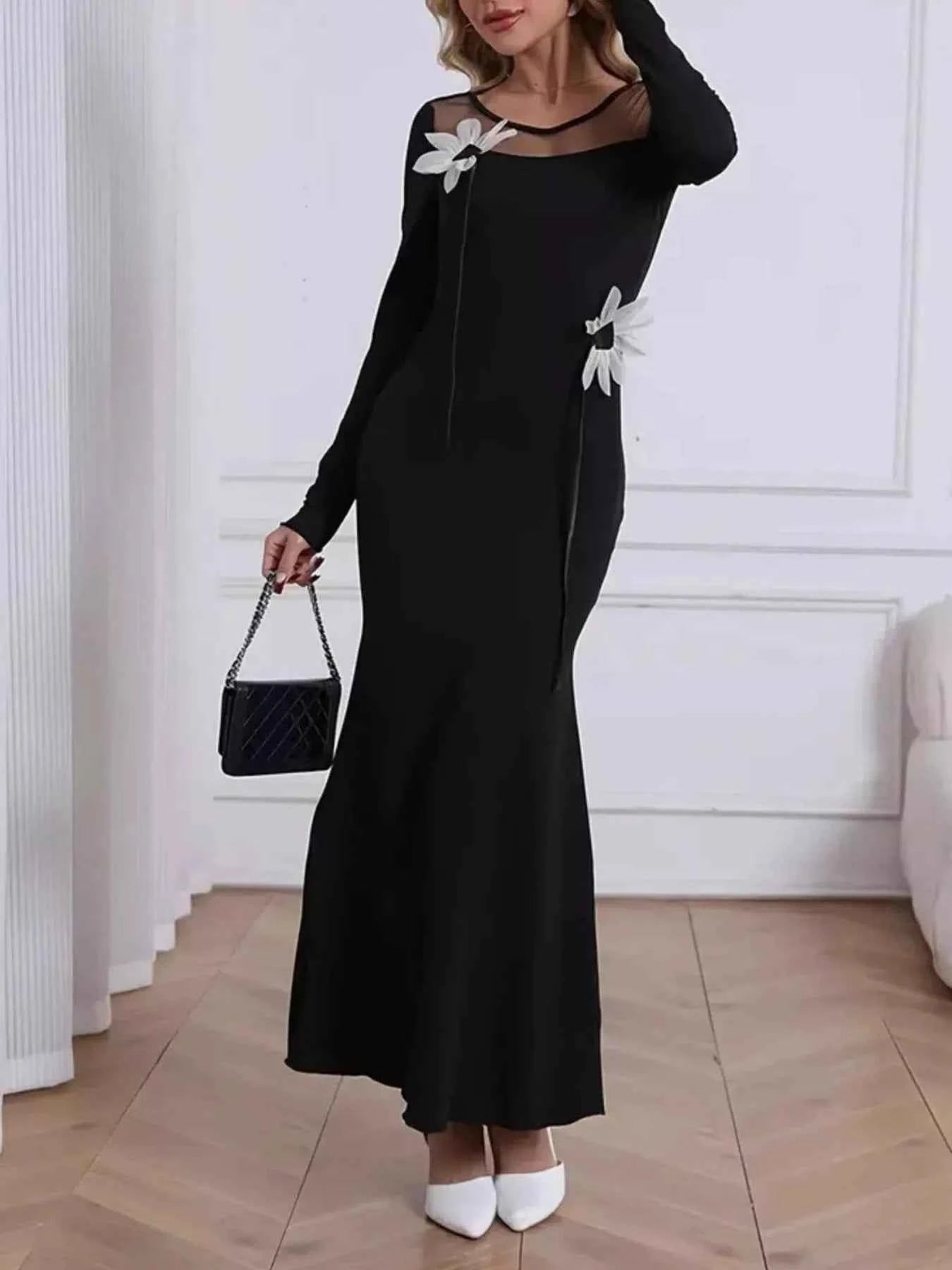 Floral Applique Long Sleeve Maxi Dress Floral Applique Long Sleeve Maxi Dress
