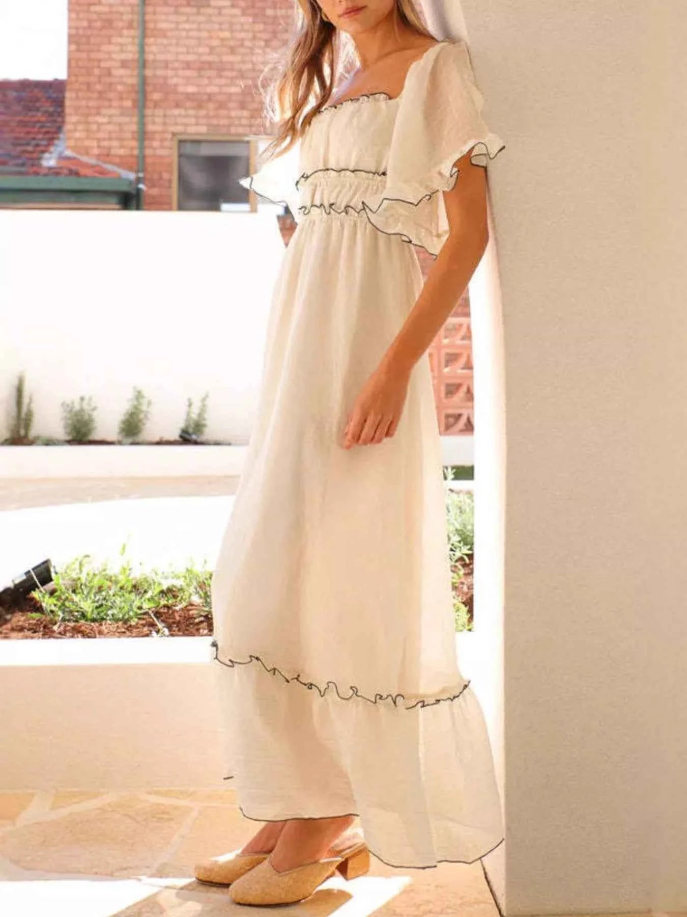 Smocked Square Neck Flounce Sleeve Maxi Dress Smocked Square Neck Flounce Sleeve Maxi Dress