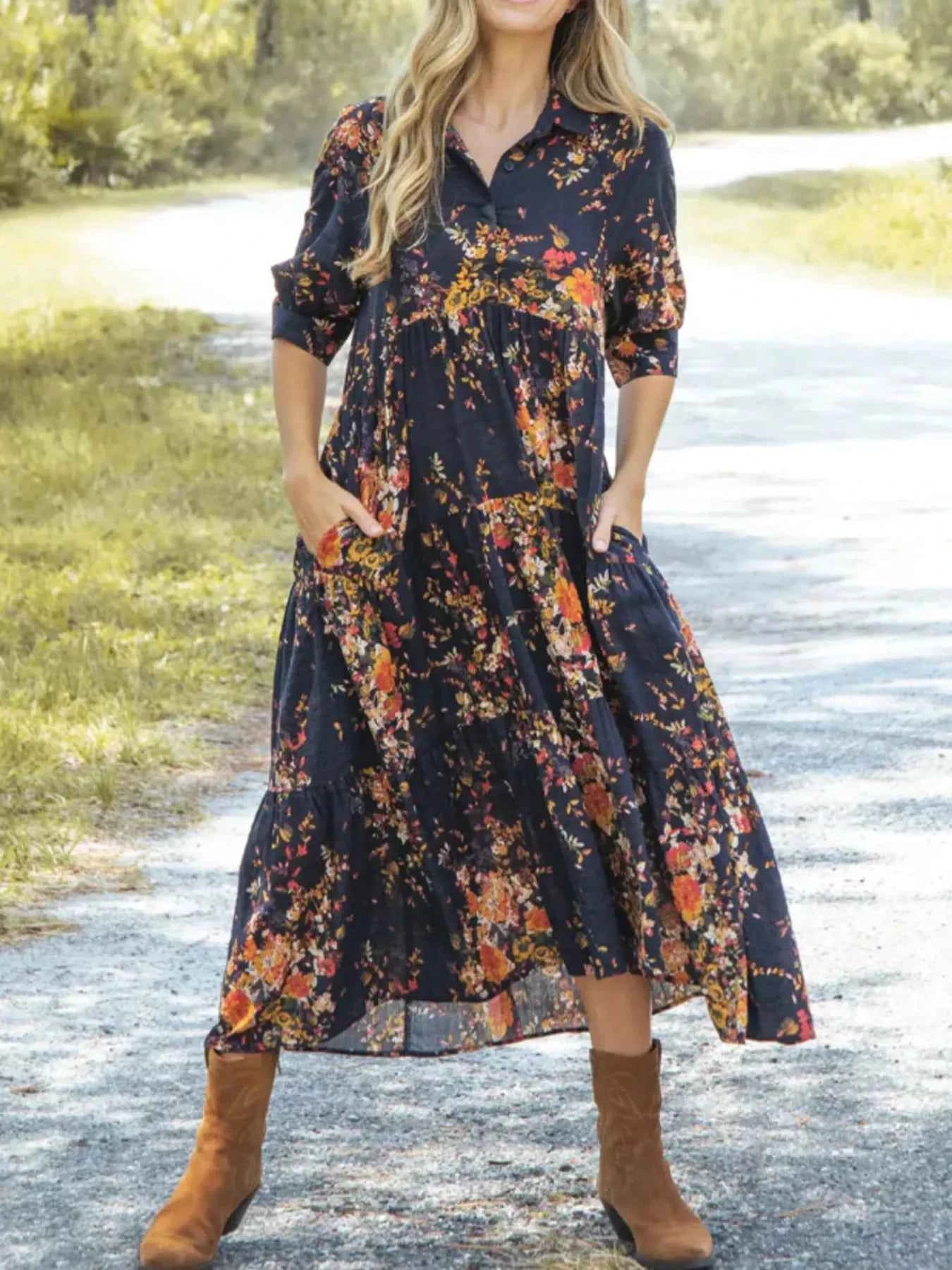 Full Size Printed Half Sleeve Midi Dress Plus Size -