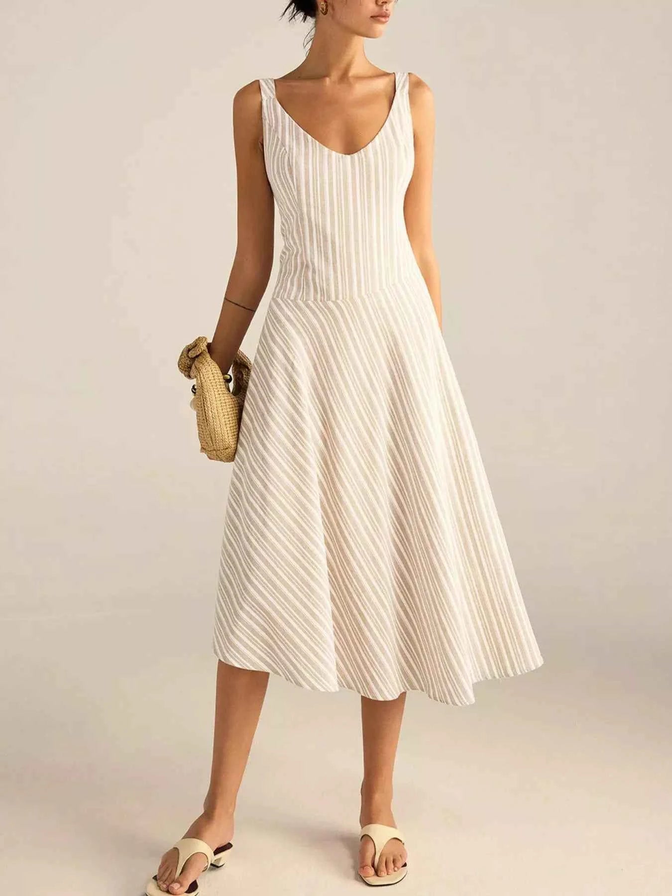 Full Size Striped Sleeveless Midi Dress Plus Size -