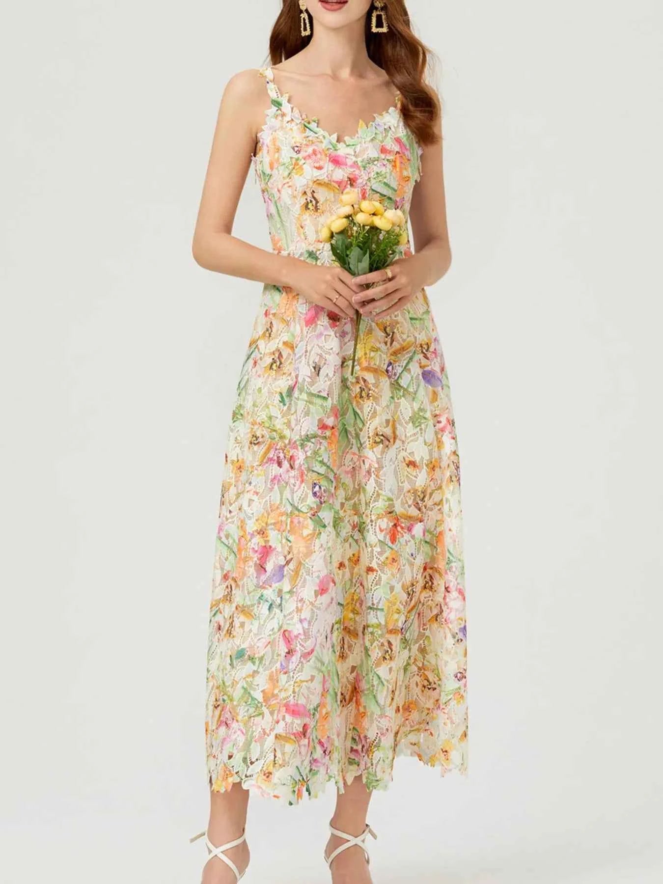 Floral Lace Sleeveless V-Neck Midi Dress -