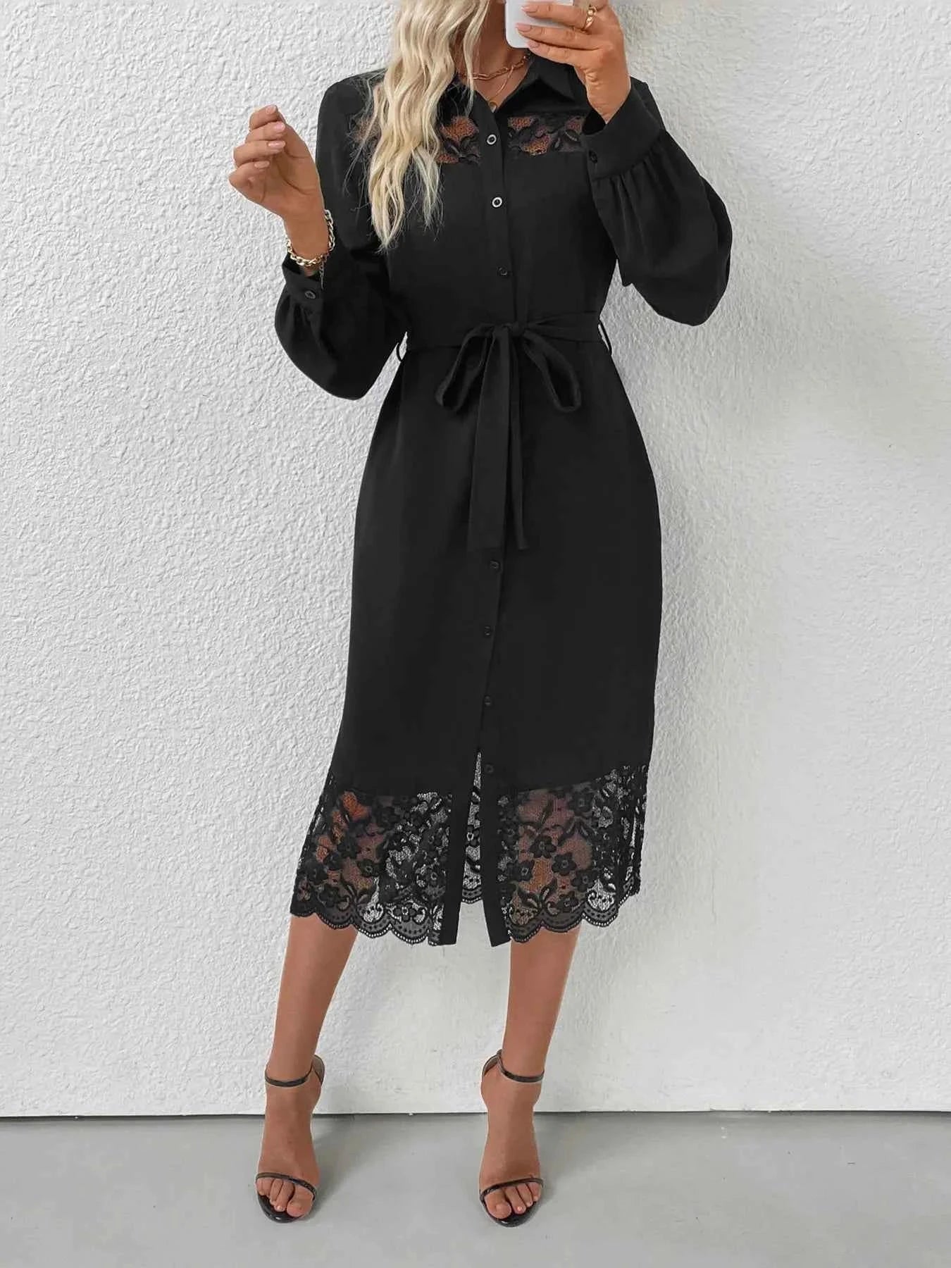 Lace Detail Button-Front Midi Shirt Dress Lace Detail Button-Front Midi Shirt Dress