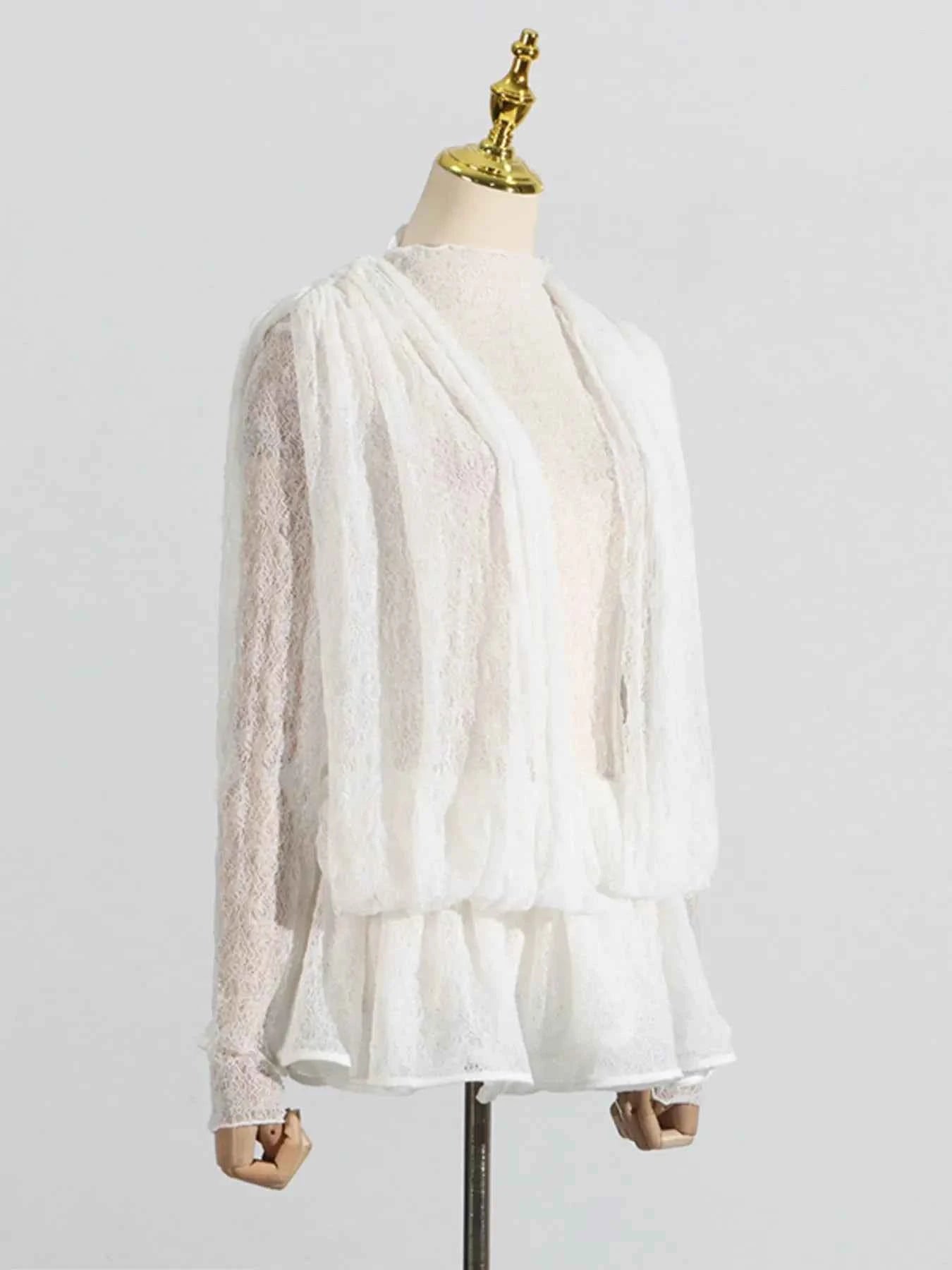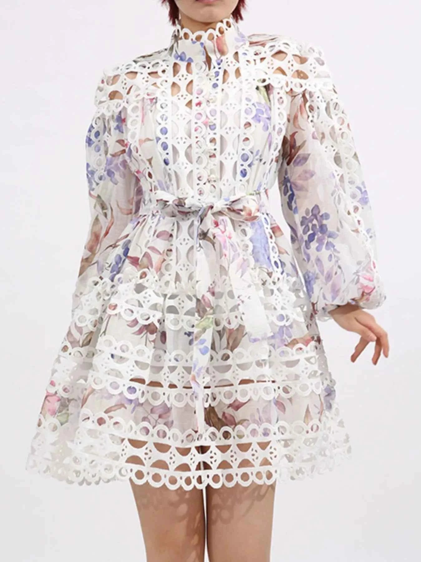 Lace Eyelet Mini Dress with Balloon Sleeves Lace Eyelet Mini Dress with Balloon Sleeves