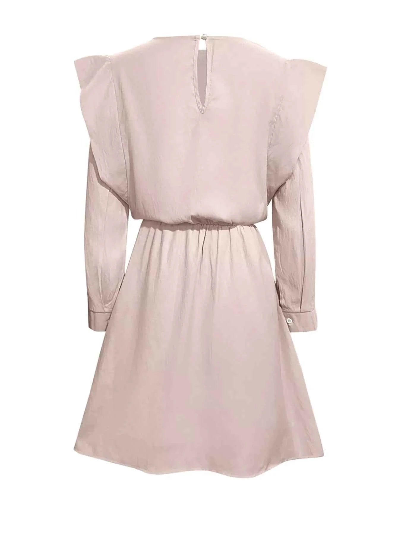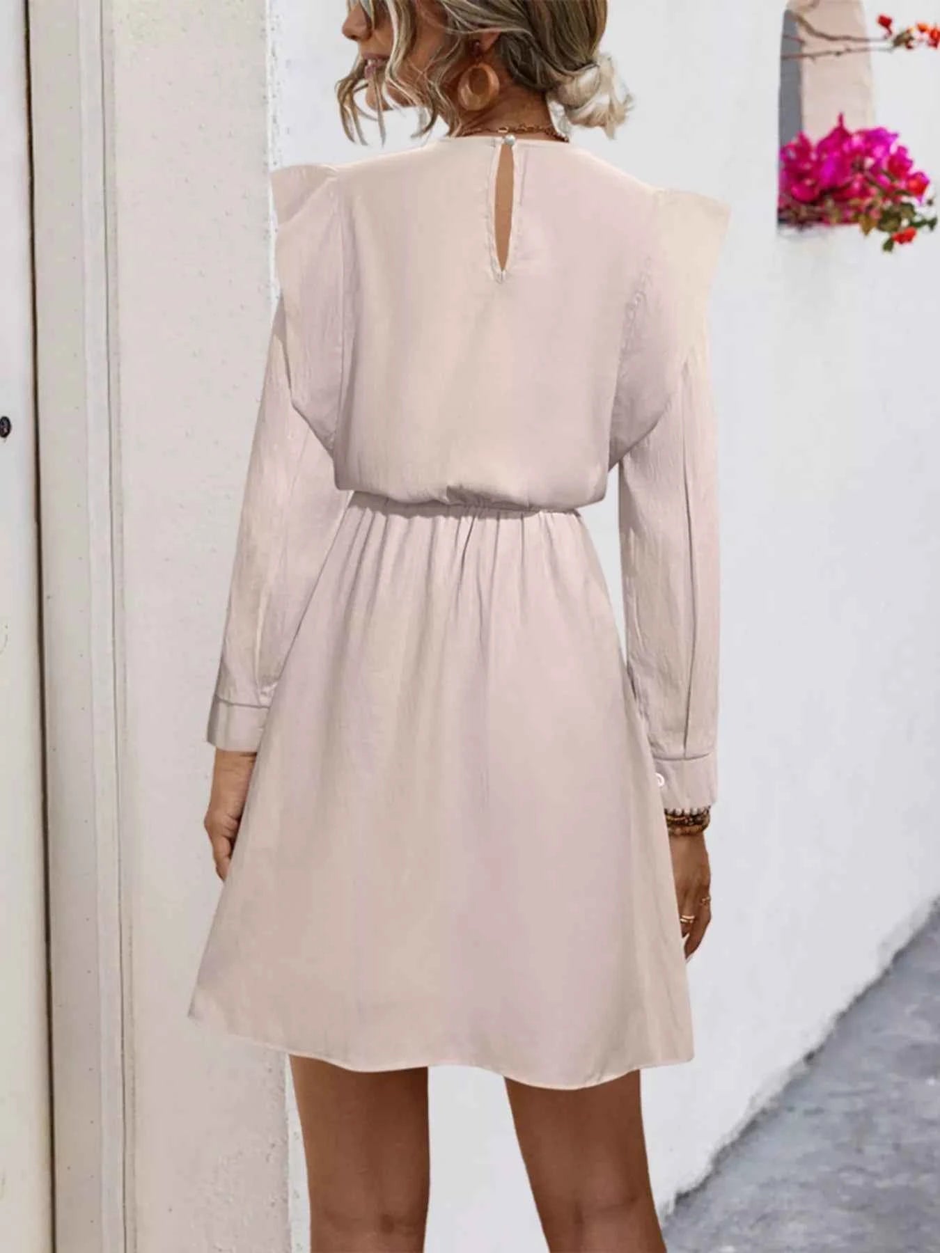 Double Tiered Ruffle Hem Long Sleeve Loose Mini Dress Double Tiered Ruffle Hem Long Sleeve Loose Mini Dress