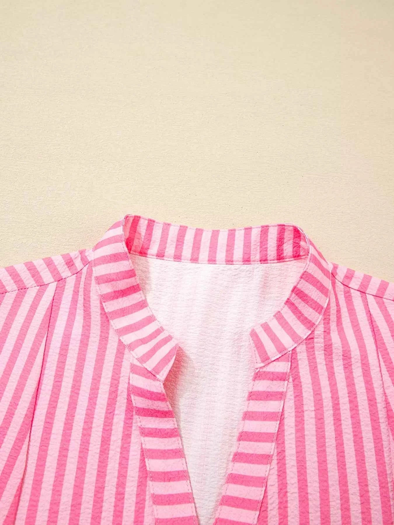 Stripe Flare Sleeve Half Placket Tiered Flowy Mini Dress Stripe Flare Sleeve Half Placket Tiered Flowy Mini Dress