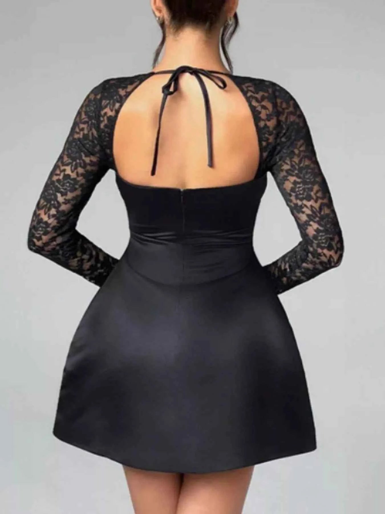 Pleated Hem Sweetheart Neckline Long Sleeve Mini Dress Pleated Hem Sweetheart Neckline Long Sleeve Mini Dress