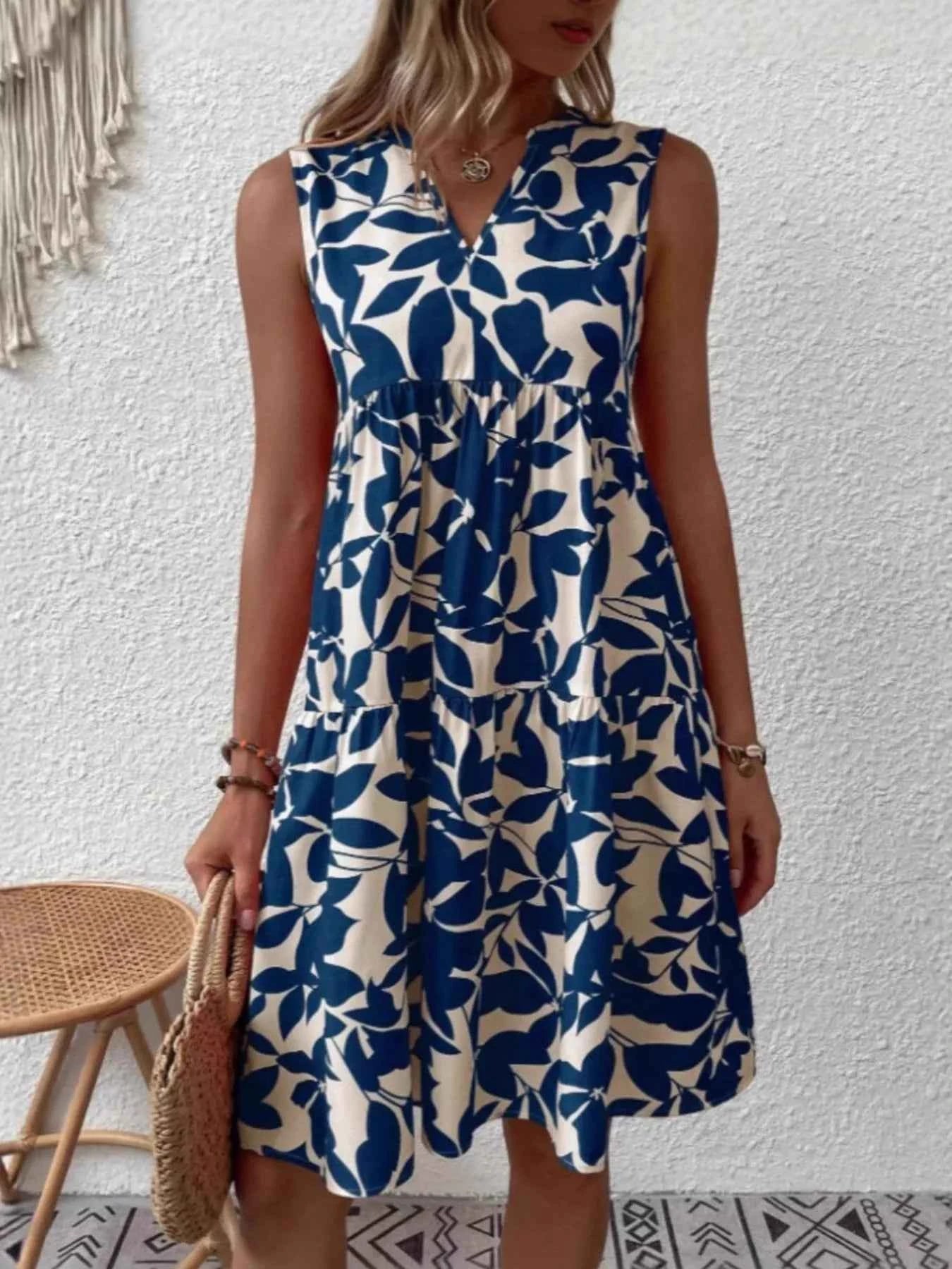 Full Size Printed Notched Sleeveless Mini Dress Plus Size Full Size Printed Notched Sleeveless Mini Dress Plus Size
