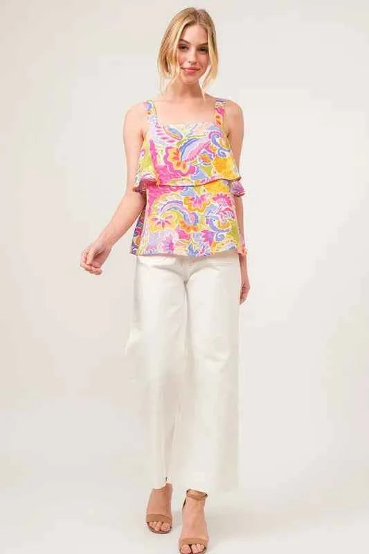 And The Why Square Neck Tiered Paisley Printed Top And The Why Square Neck Tiered Paisley Printed Top