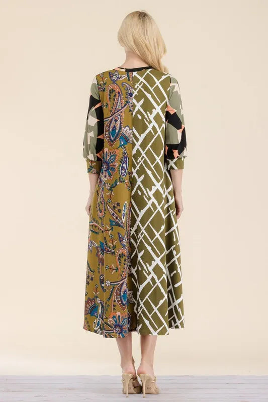 Celeste Full Size Paisley Kontrast Zelt Midikleid Übergröße -