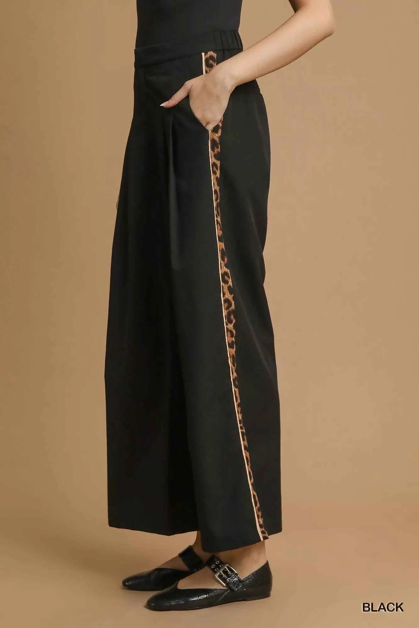 Umgee Front Pleated Wide-Leg Pants with Contrast Trim Umgee Front Pleated Wide-Leg Pants with Contrast Trim