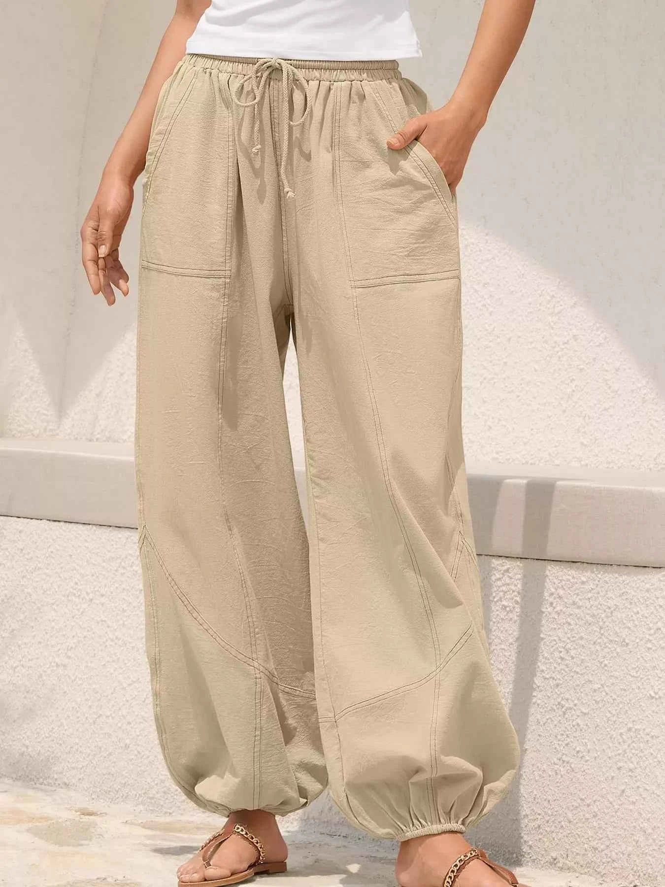 Wide Leg Drawstring Pants -