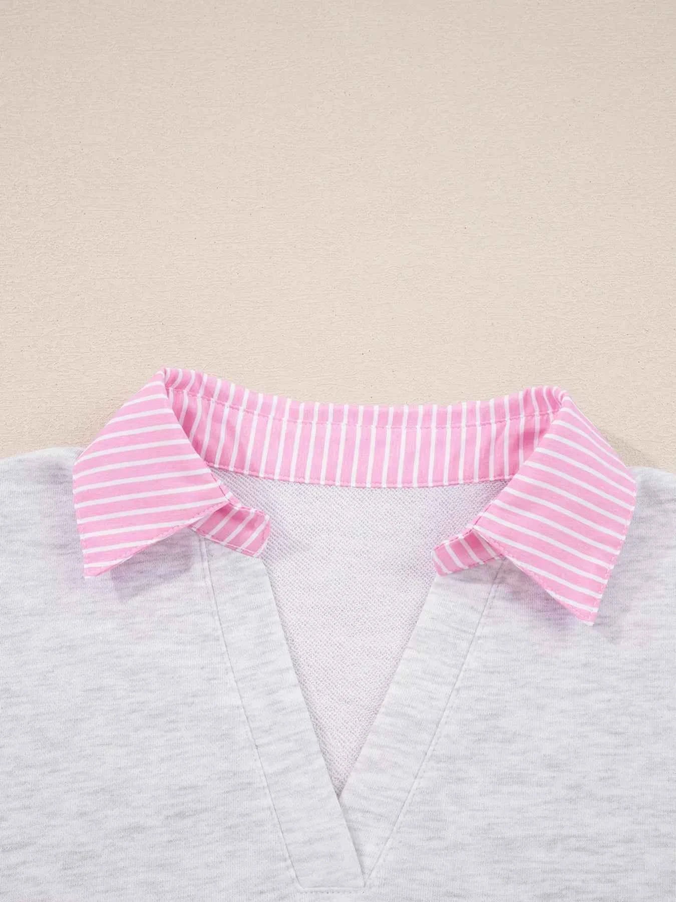 Contrasted Trim Frilled Collar Drop Shoulder Top and Drawstring Pant Set Contrasted Trim Frilled Collar Drop Shoulder Top and Drawstring Pant Set