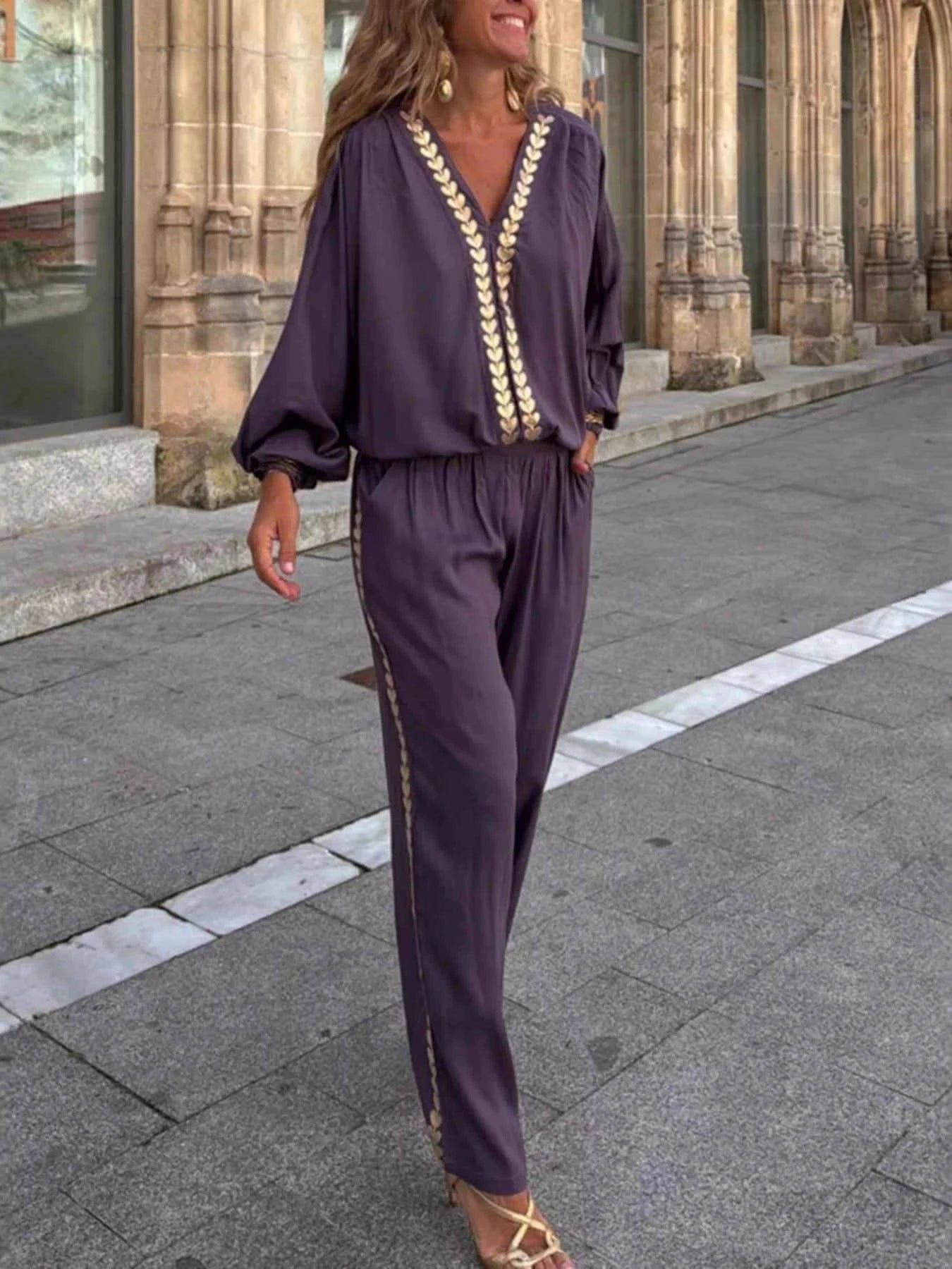 Full Size Contrast Trim V-Neck Top and Pants Set Plus Size Full Size Contrast Trim V-Neck Top and Pants Set Plus Size