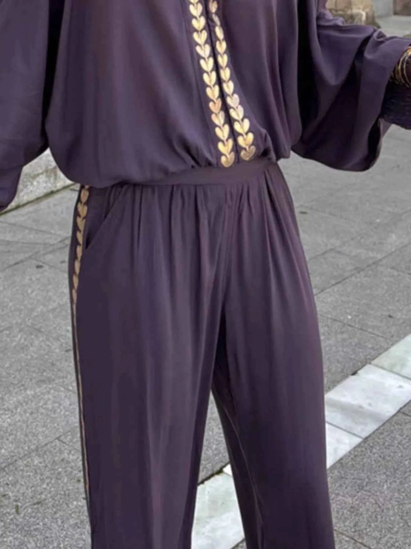 Leopard Print Contrast Trim Long Sleeve Top and Pants Set Leopard Print Contrast Trim Long Sleeve Top and Pants Set