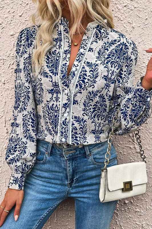 Bohemian Printed Bishop Sleeve Lace Shirt Bohemian Printed Bishop Sleeve Lace Shirt
