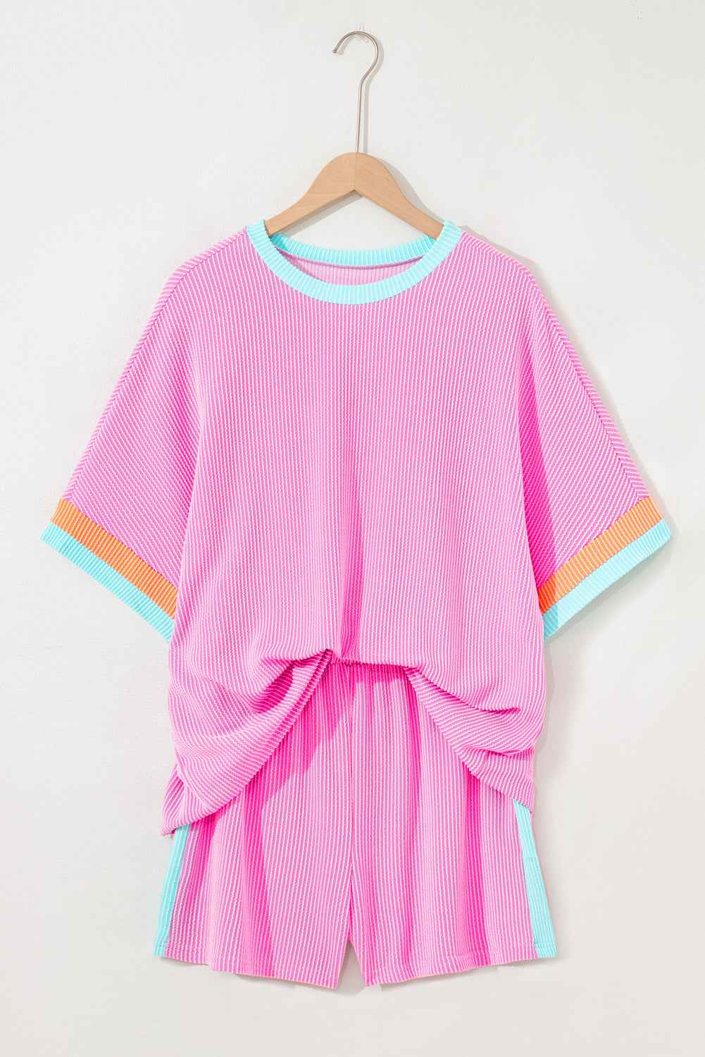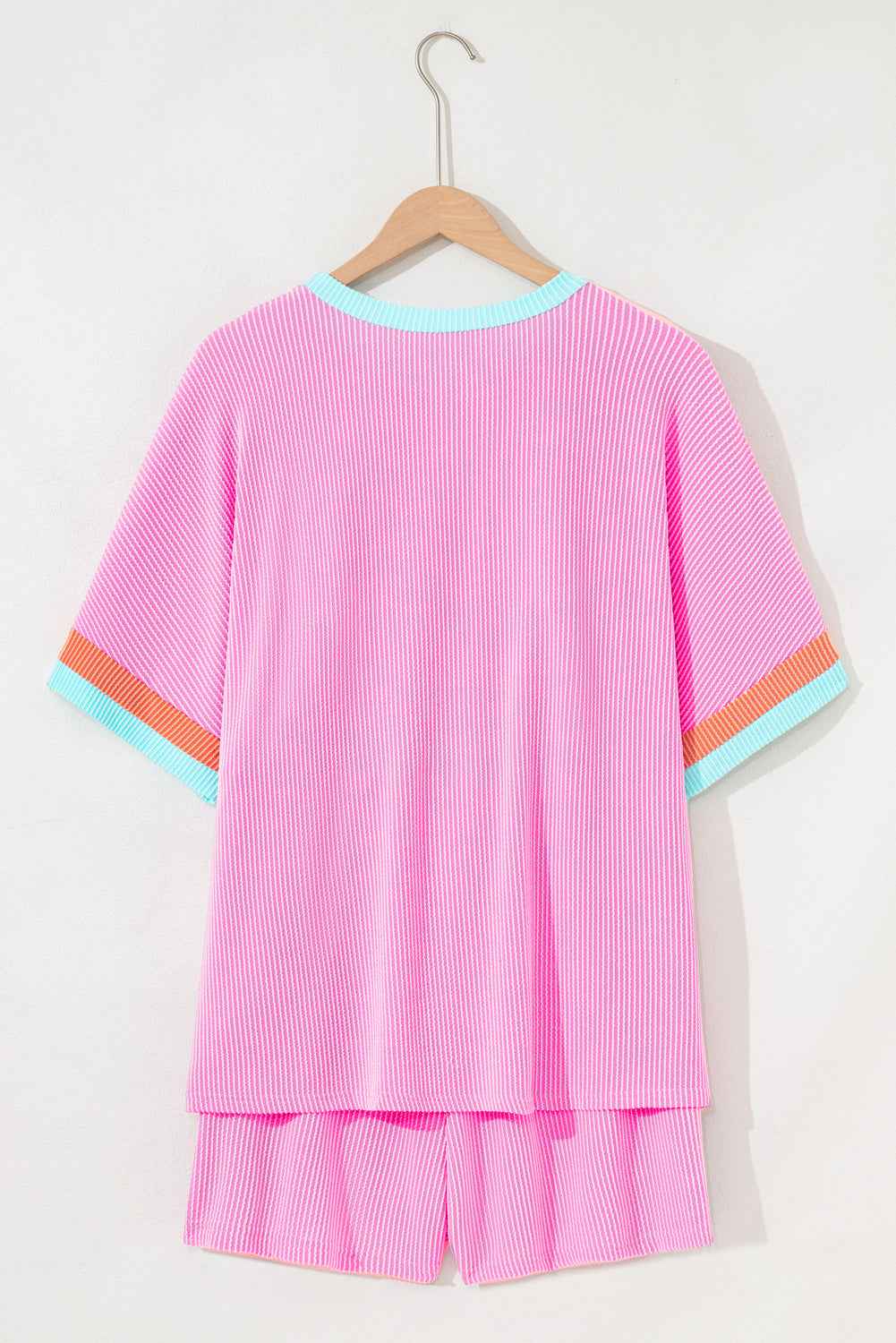 Bonbon Colorblock Corded Plus Size Two Piece Shorts Set Bonbon Colorblock Corded Plus Size Two Piece Shorts Set