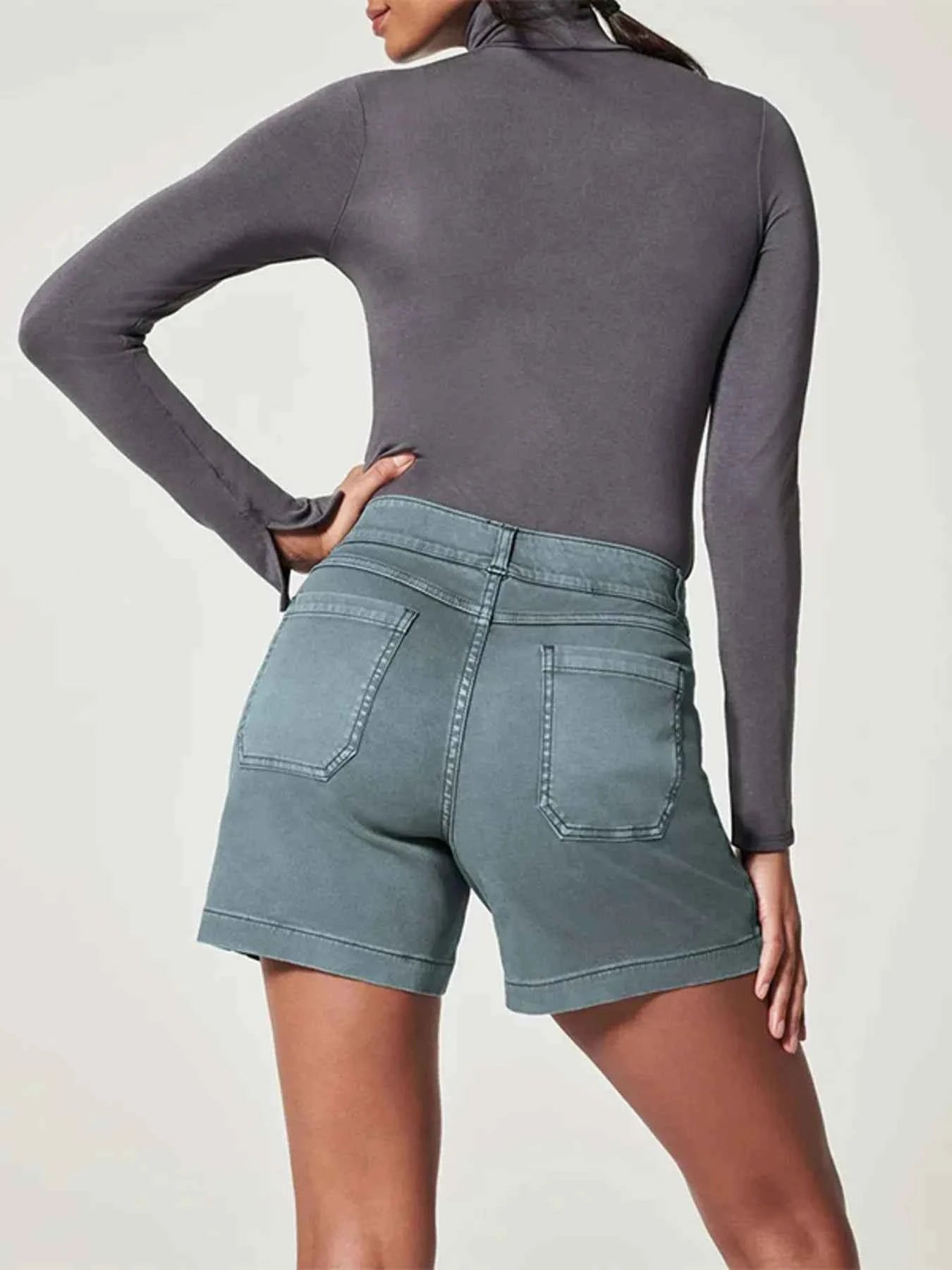 RISEN Raw Hem Denim Shorts with Pockets RISEN Raw Hem Denim Shorts with Pockets
