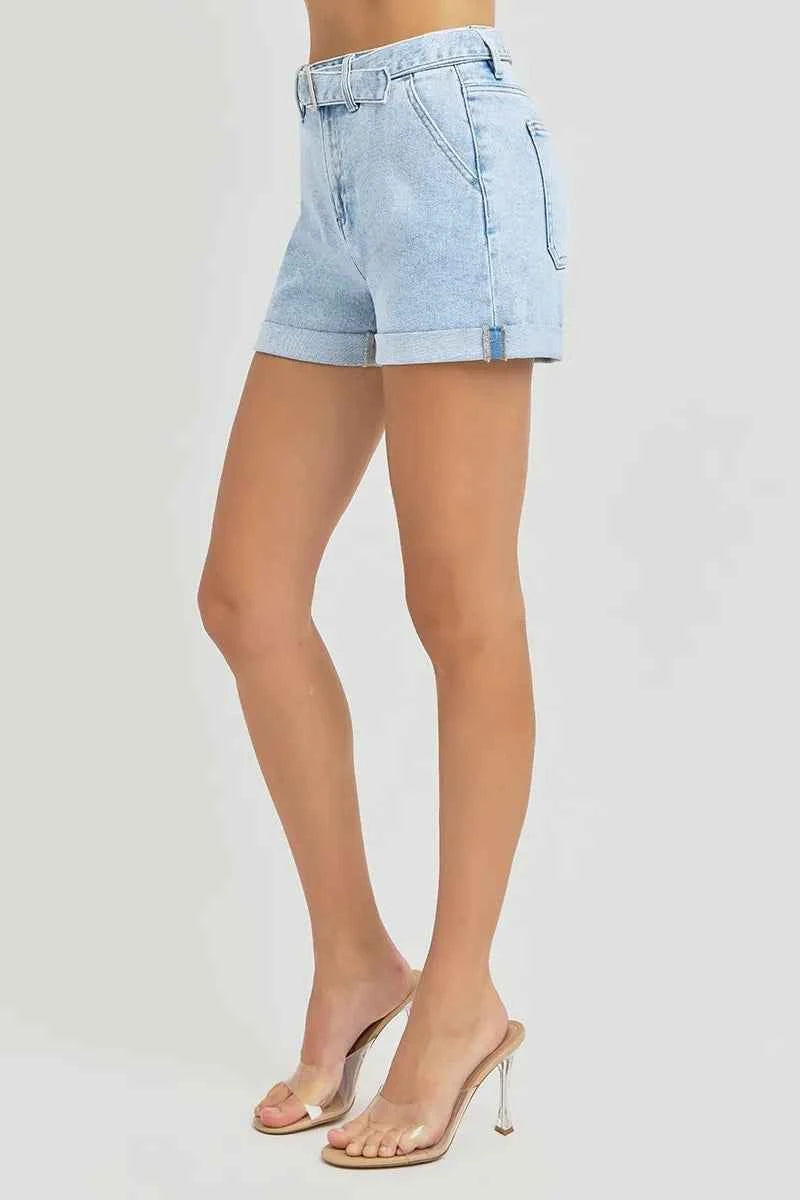 RISEN Full Size High Rise Belted Roll Up Shorts Plus Size RISEN Full Size High Rise Belted Roll Up Shorts Plus Size