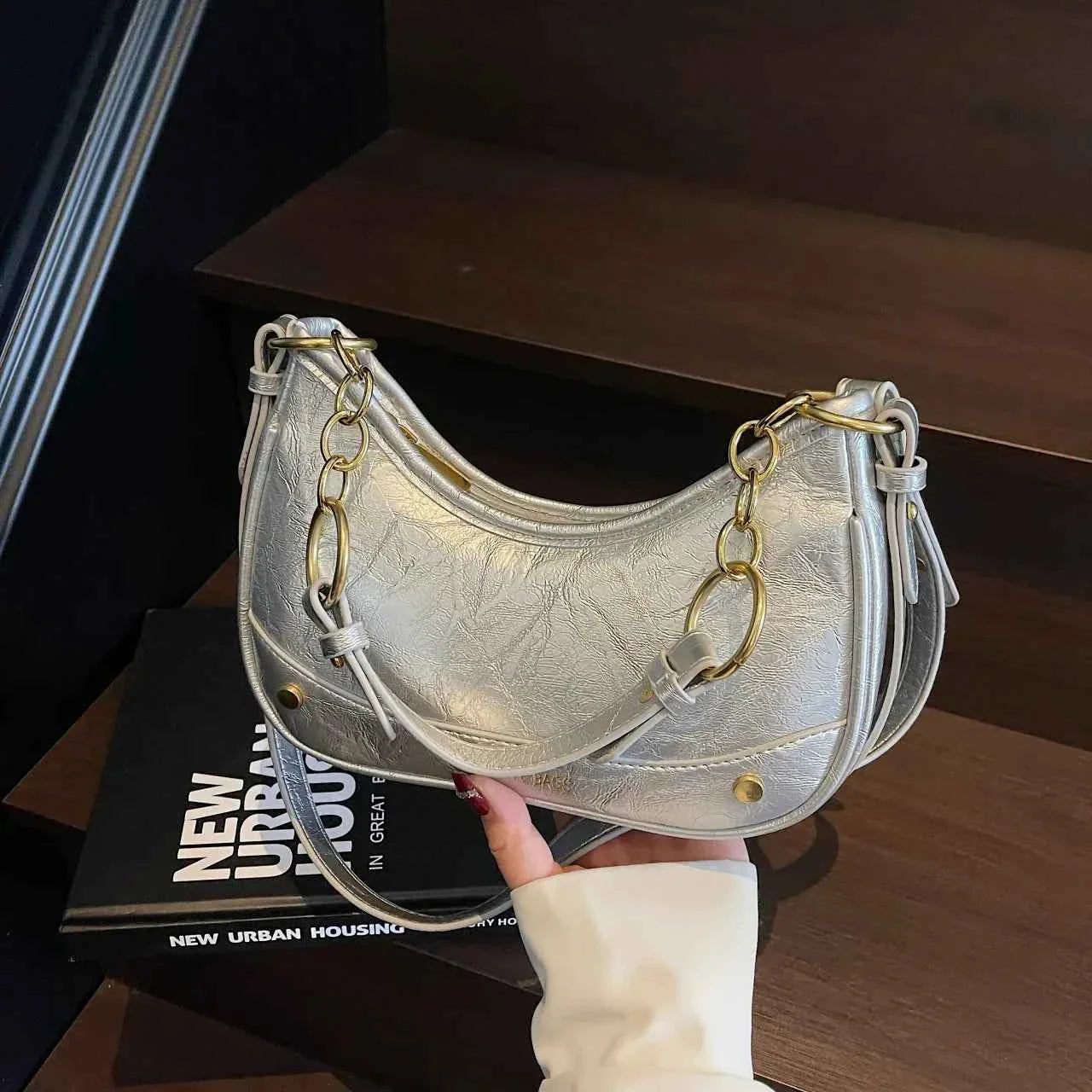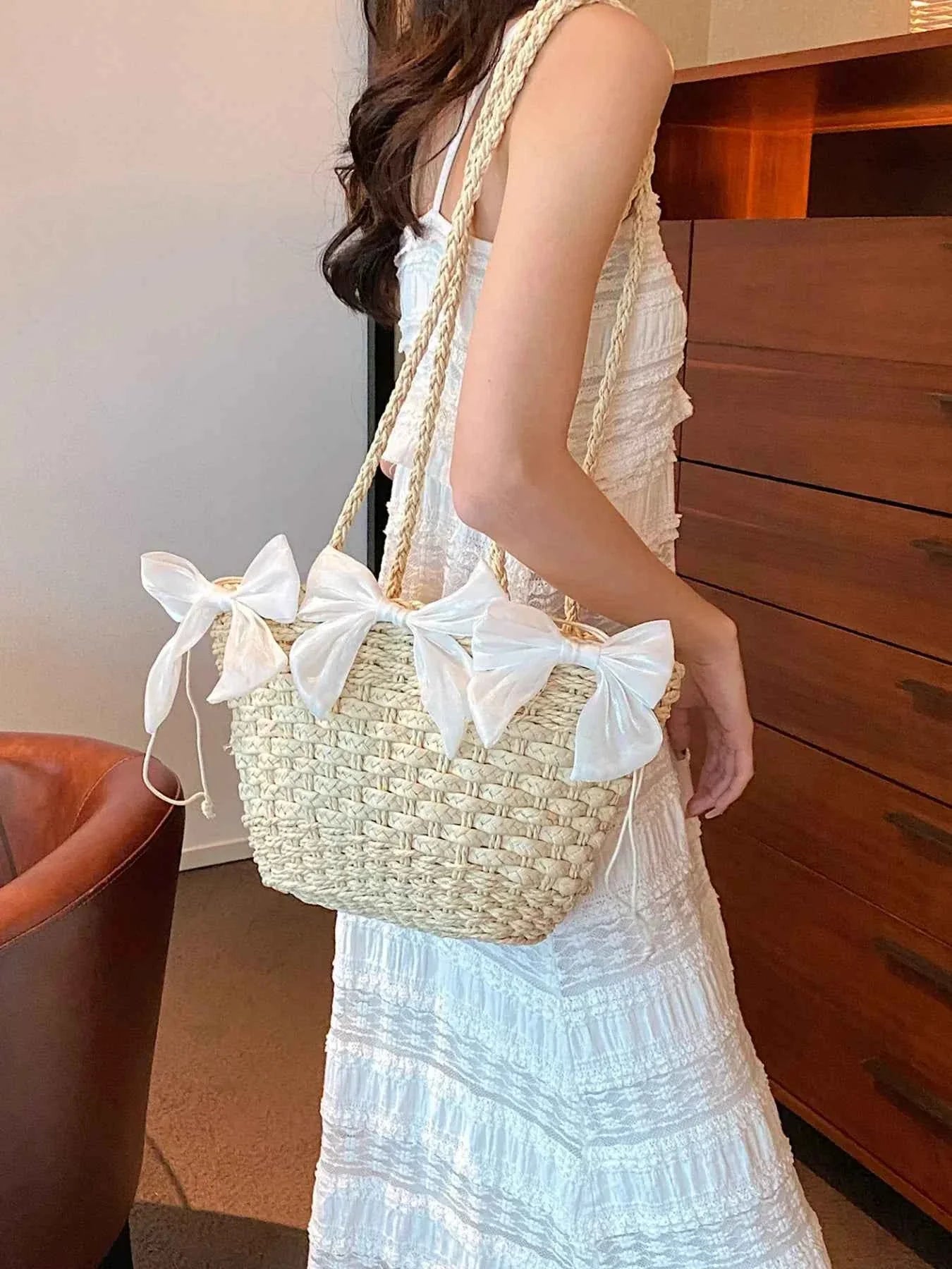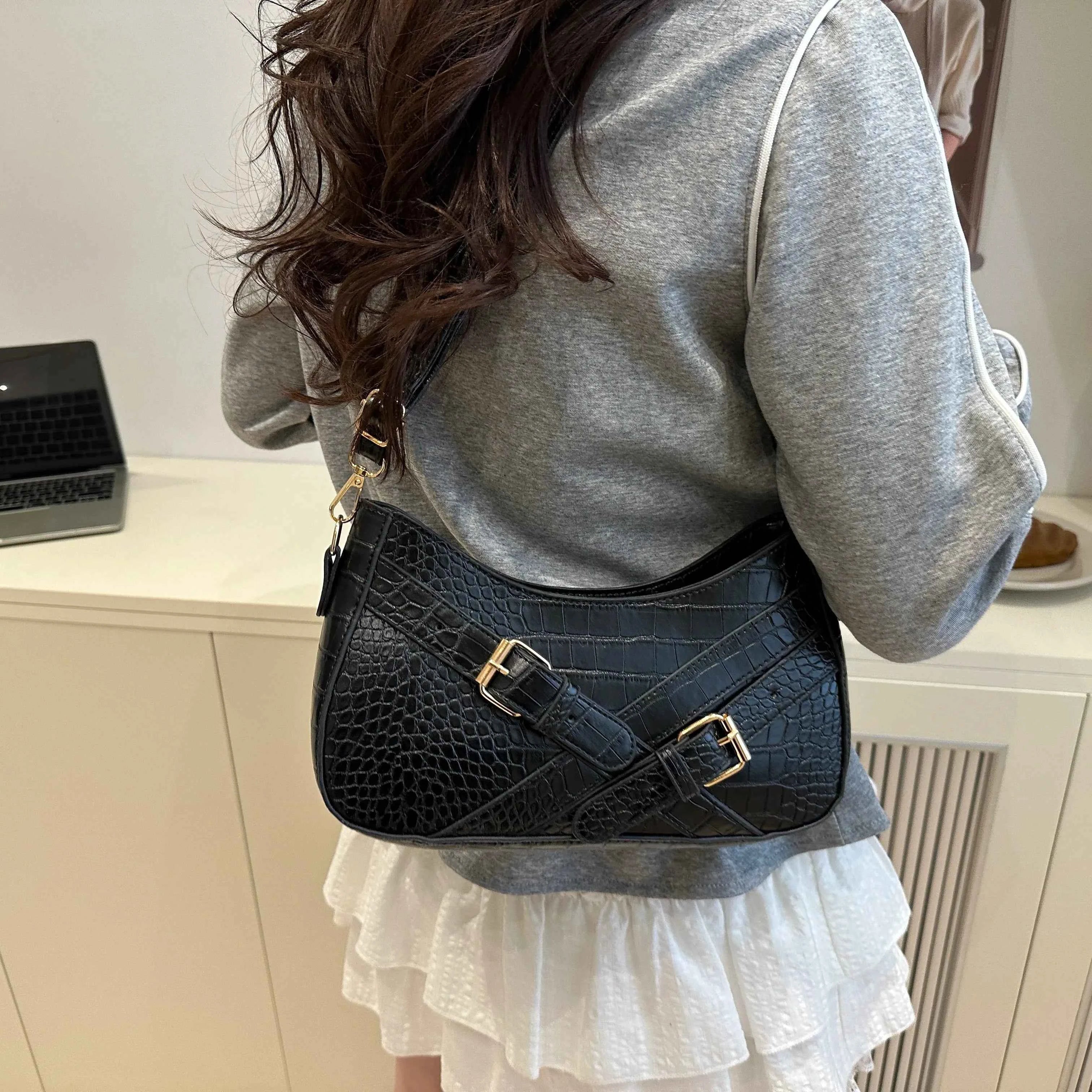 Crocodile Pattern Shoulder Bag with Bow Detail -