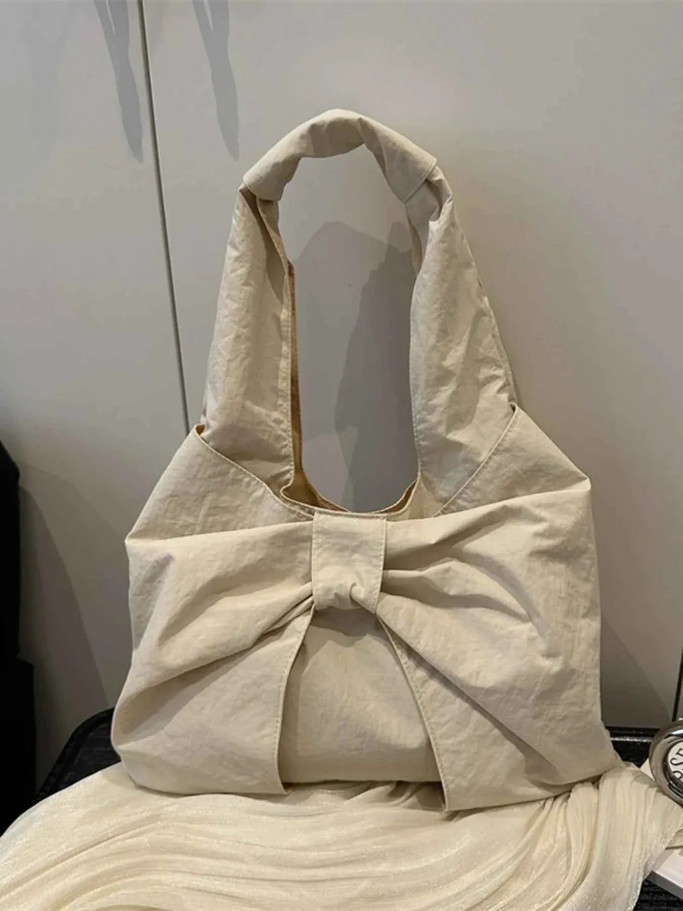 Woven Straw Shoulder Bag with Bow Detail Woven Straw Shoulder Bag with Bow Detail